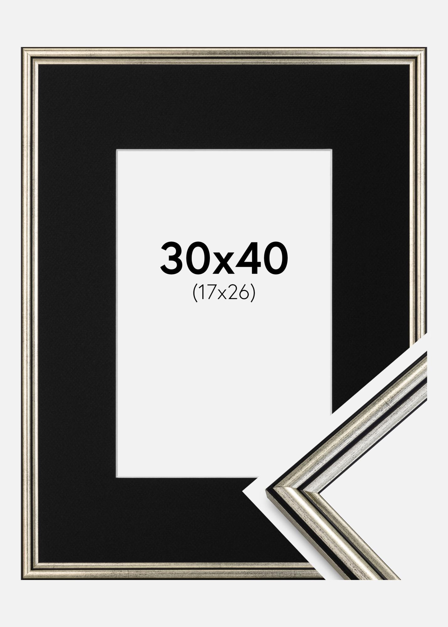Marco Horndal Plateado 30x40 cm - Paspartú Negro 18x27 cm
