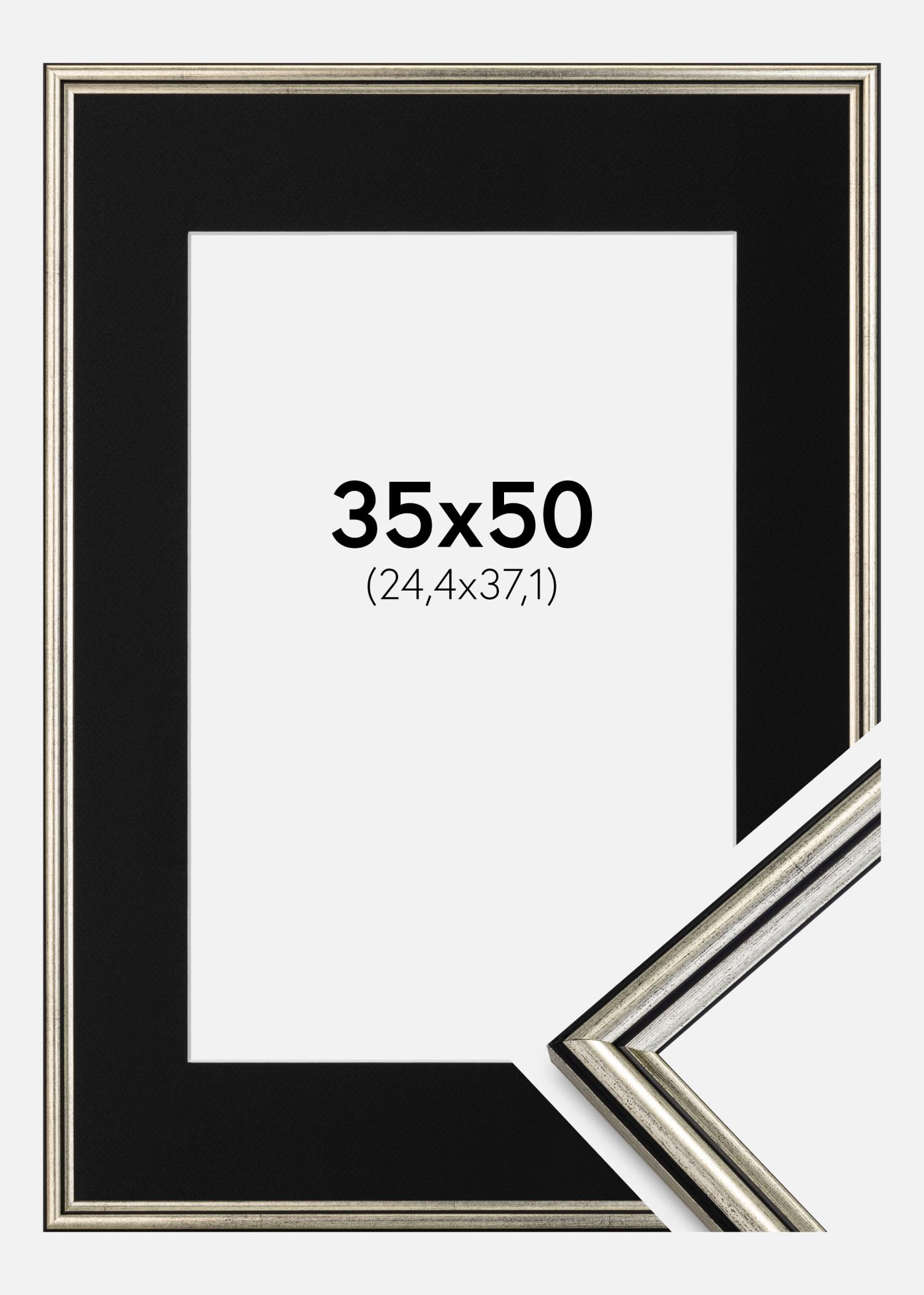 Marco Horndal Plateado 35x50 cm - Paspartú Negro 10x15 inches