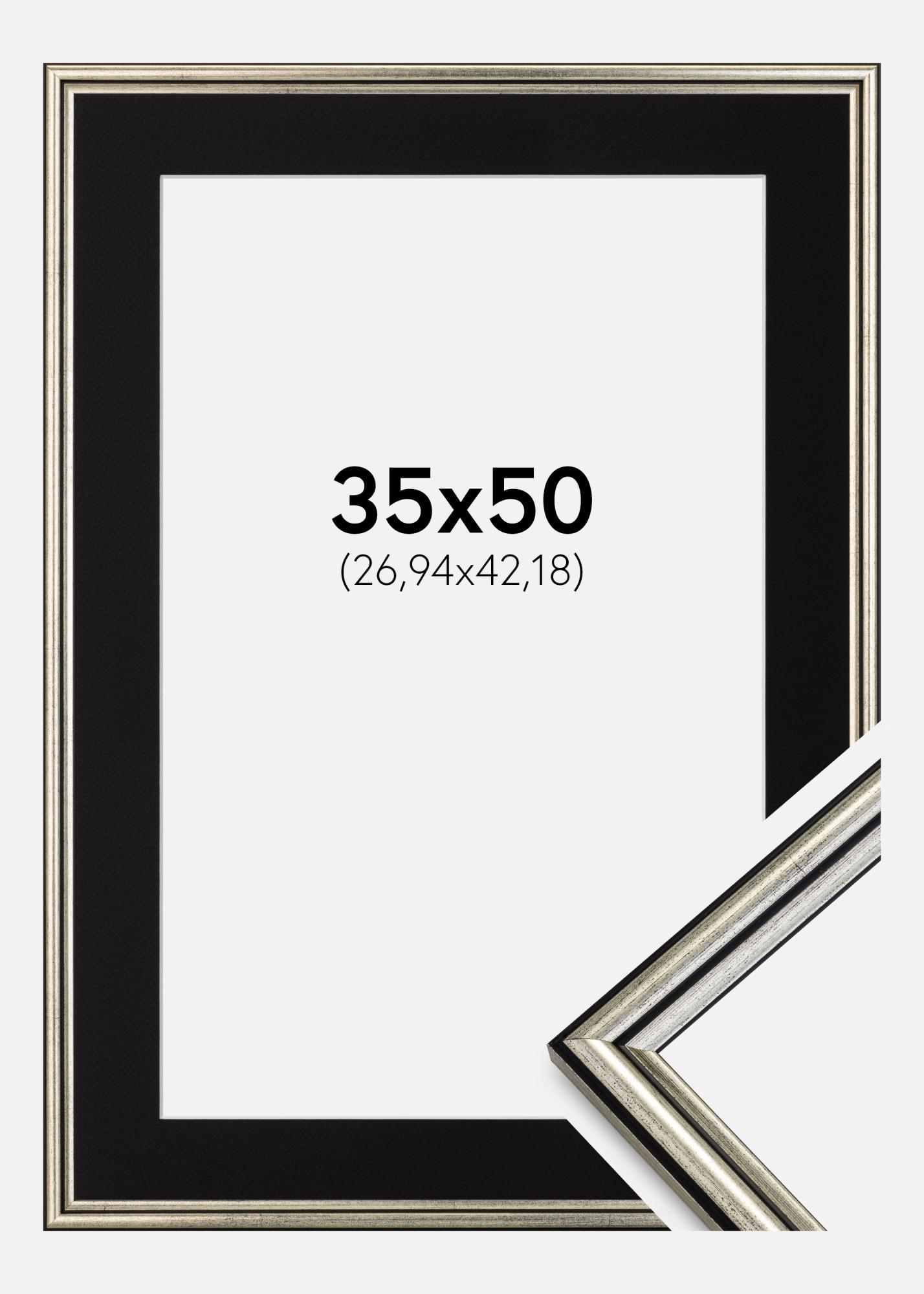 Marco Horndal Plateado 35x50 cm - Paspartú Negro 11x17 inches