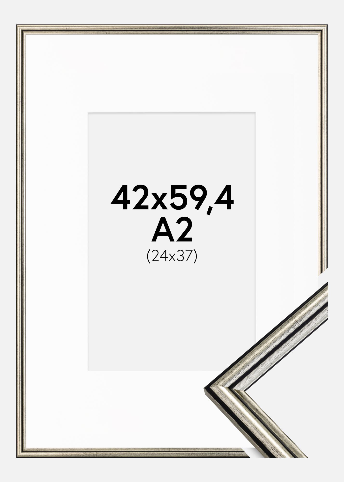 Marco Horndal Plateado 42x59,4 cm (A2) - Paspartú Blanco 25x38 cm
