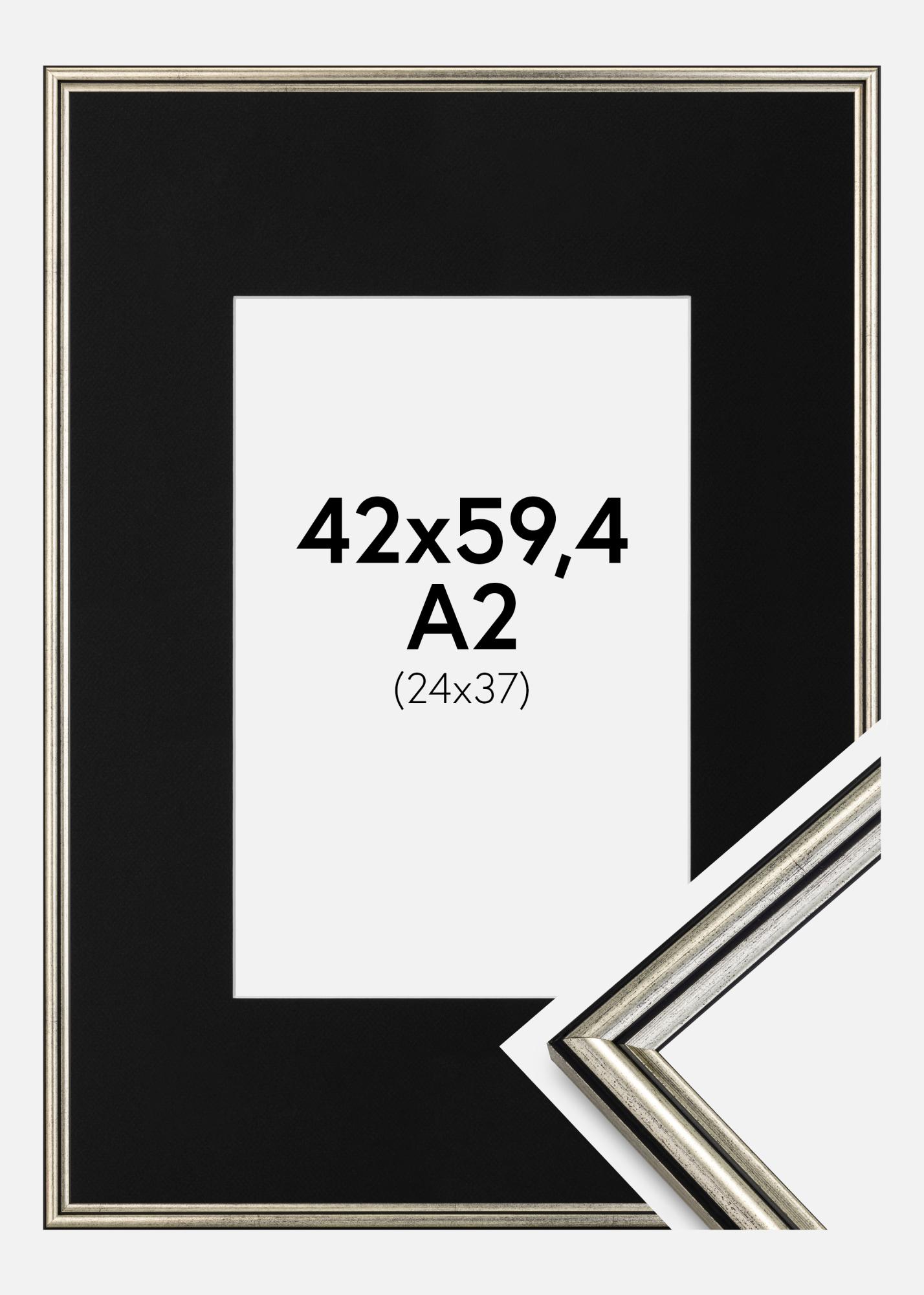 Marco Horndal Plateado 42x59,4 cm (A2) - Paspartú Negro 25x38 cm