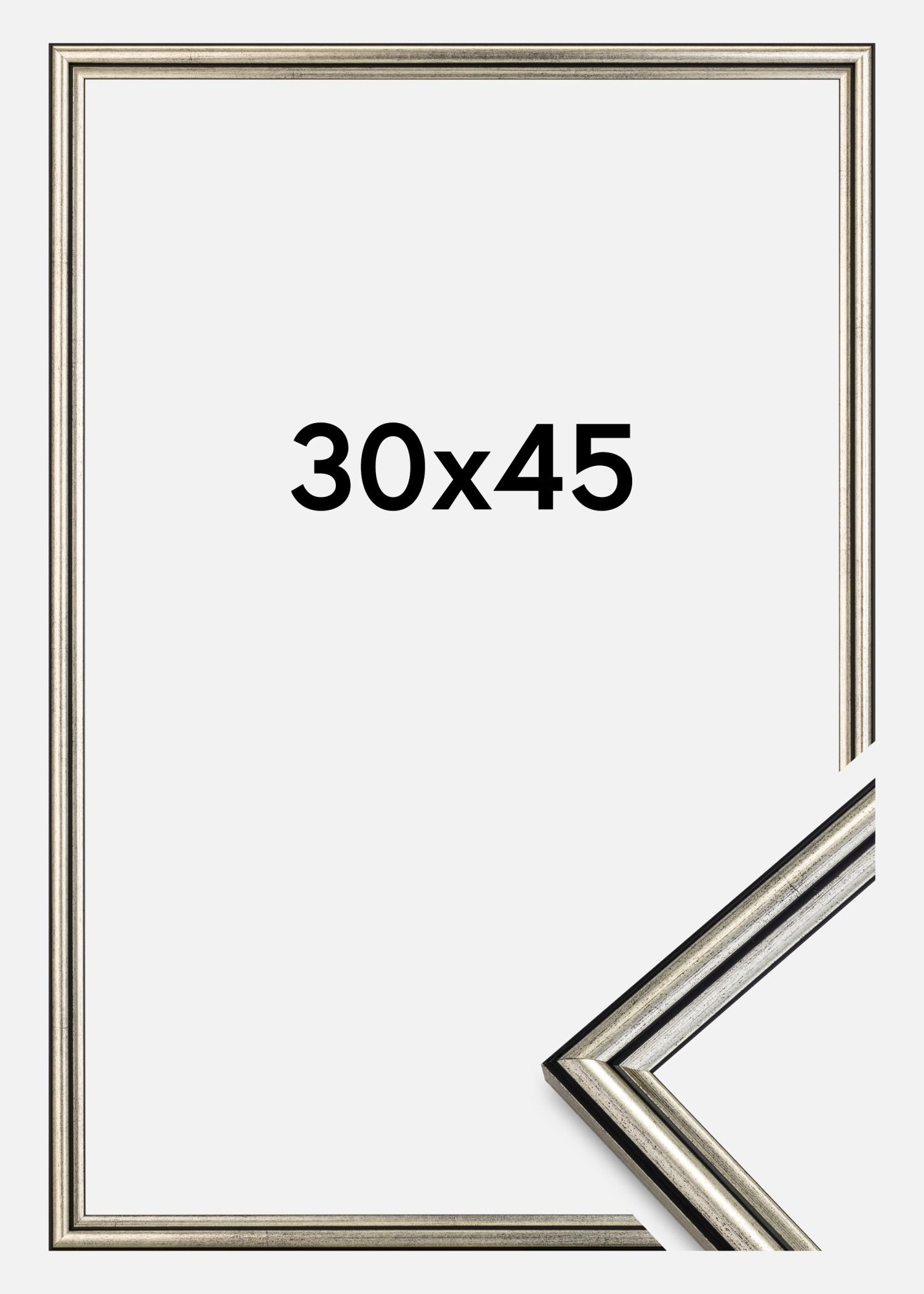 Descubra la elegancia y el diseño sofisticado con nuestro marco plateado de 30x45 cm, perfecto para resaltar sus imágenes o obras de arte favoritas. Este marco de fotos es un detalle con estilo en cualquier habitación, con sus sutiles manchas negras y líneas negras que le dan una profundidad y carácter únicos.