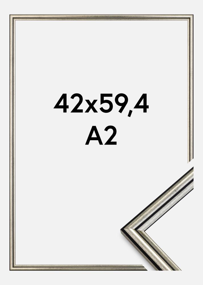 Descubre la elegancia y el diseño moderno con nuestro marco de plata de 42x59,4 cm (A2), perfecto para resaltar tus obras de arte o fotografías favoritas. Este marco fotográfico es un detalle elegante en cualquier habitación, con sus sutiles manchas negras y líneas decorativas negras que le dan una individual profundidad y carácter.