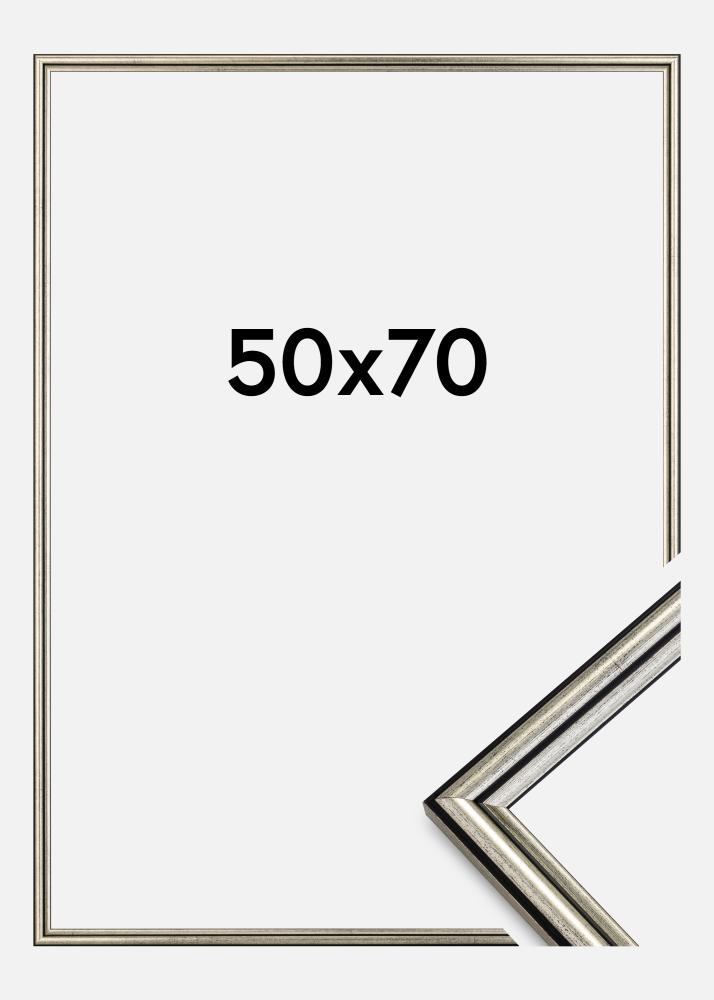 Descubre la elegancia y el diseño sofisticado con nuestro marco plateado de 50x70 cm, perfecto para resaltar tus obras de arte o fotografías favoritas. Este marco de fotos es un detalle elegante en cualquier habitación, con sus sutiles manchas negras y líneas negras que le dan un carácter único.
