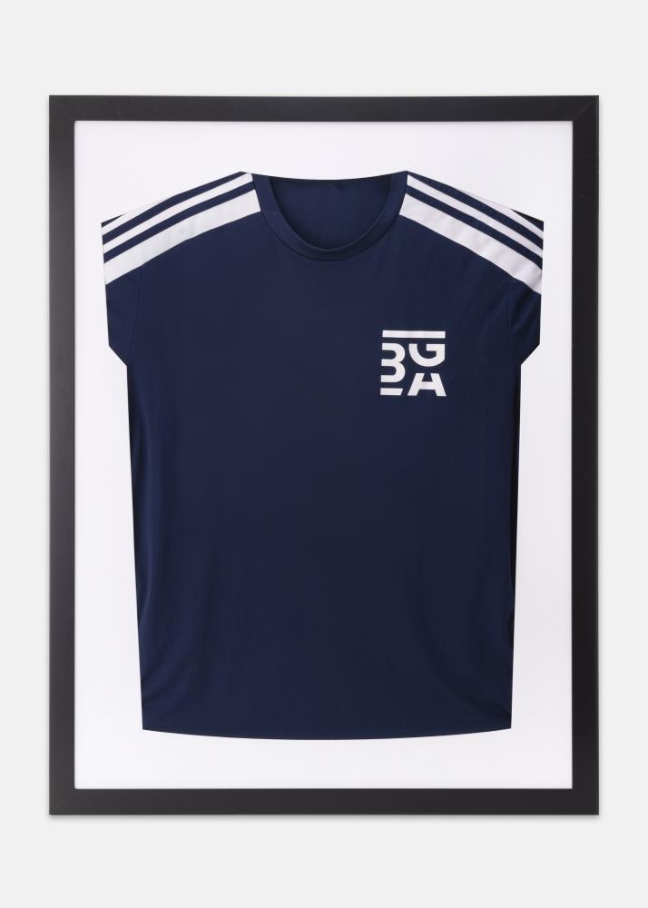 El vidrio está fabricado en acrílico, que hace que el marco sea ligero y duradero y, además, protege la prenda. El marco es estable y cuenta con un sistema de sujeción por clips que mantiene la camiseta deportiva sujeta de forma segura sin arrugarse.