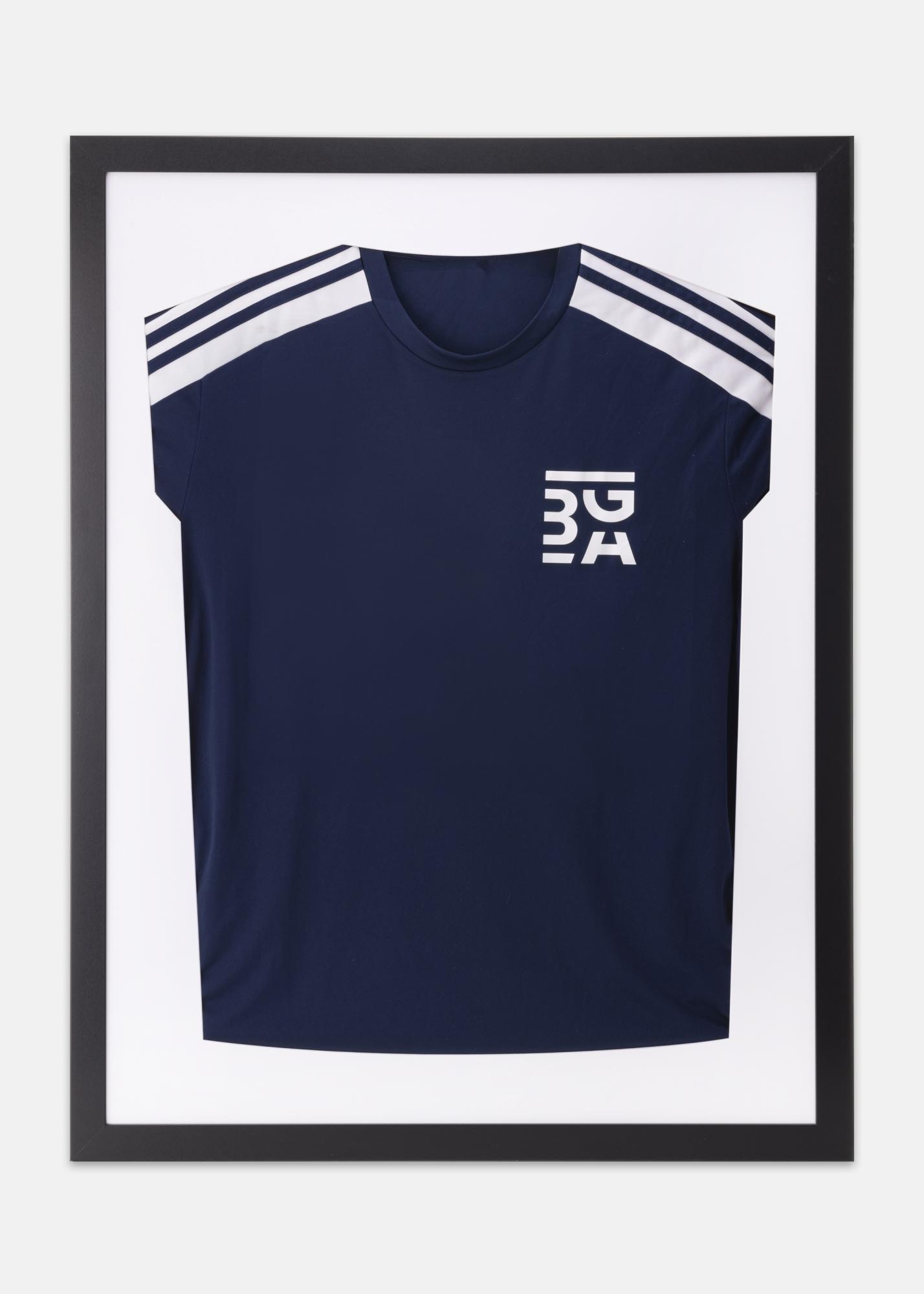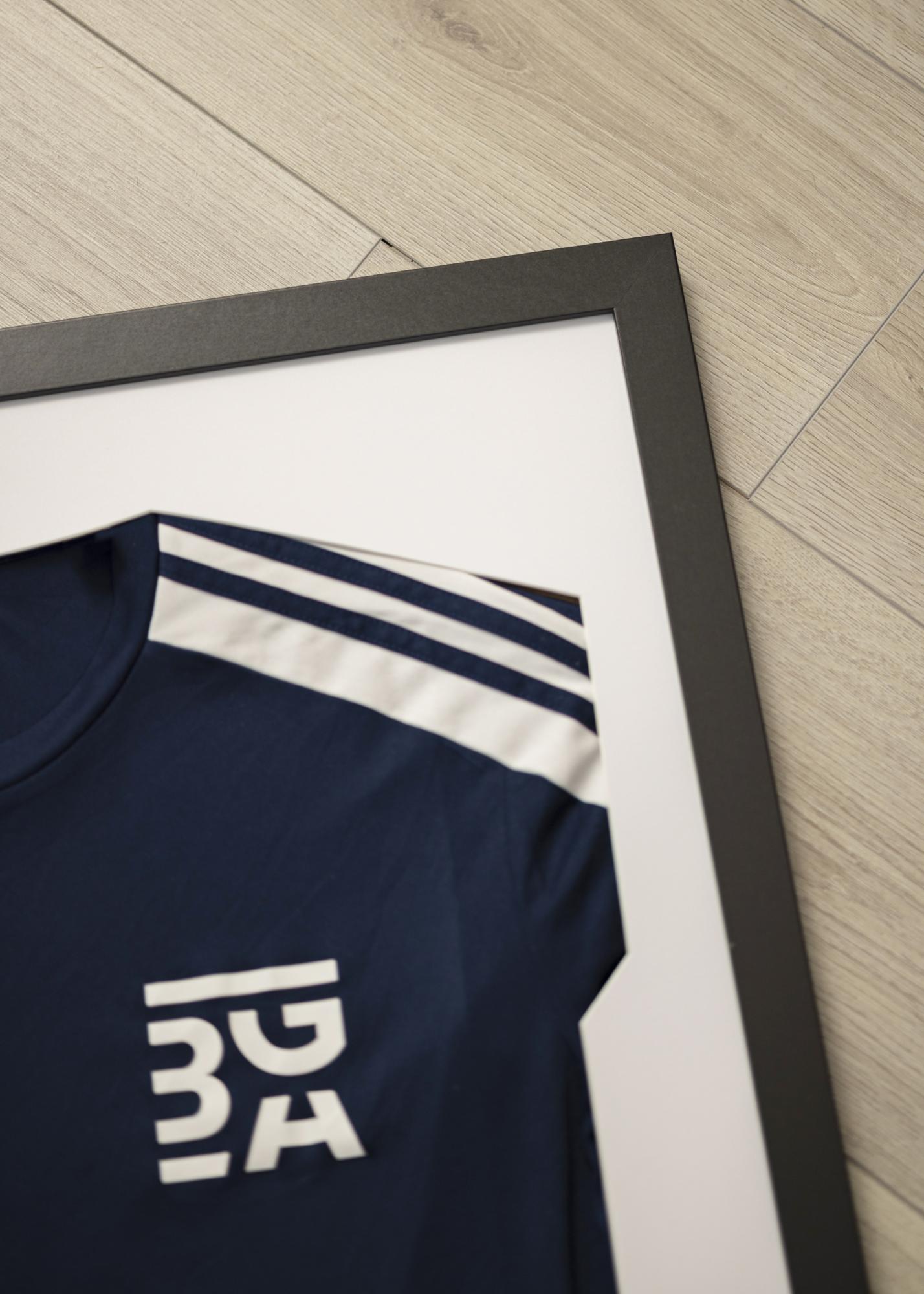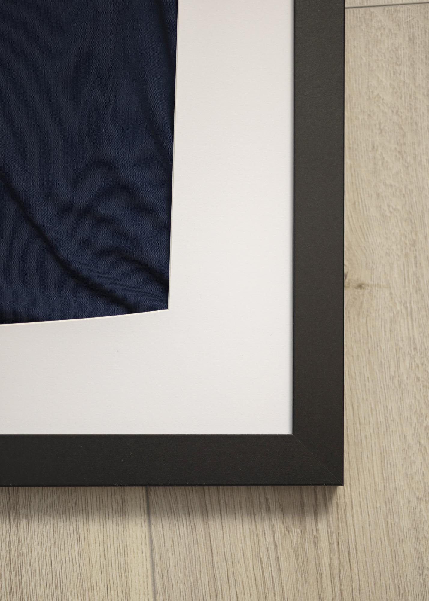 Con un marco negro y un fondo blanco, harás que resalten los colores de la camiseta de tu equipo favorito. ¿O por qué no enmarcar otros recuerdos como la primera ropa de los niños o una camiseta de tu artista favorito?