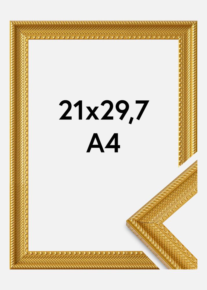 Para asegurar que el vidrio esté en perfectas condiciones al momento de la entrega, el vidrio acrílico tiene una película protectora en ambos lados que debe retirarse antes de usar. Este marco dorado no solo es una opción práctica, sino también un elemento decorativo en tu hogar. Ya sea que lo coloques en la sala de estar, el dormitorio o la oficina, ofrecerá una presentación sofisticada y atemporal de tus imágenes más queridas. El marco se adapta a motivos de tamaño 21 x 29,7 cm (A4) y es una elección excelente para quien busca tanto estilo como funcionalidad.