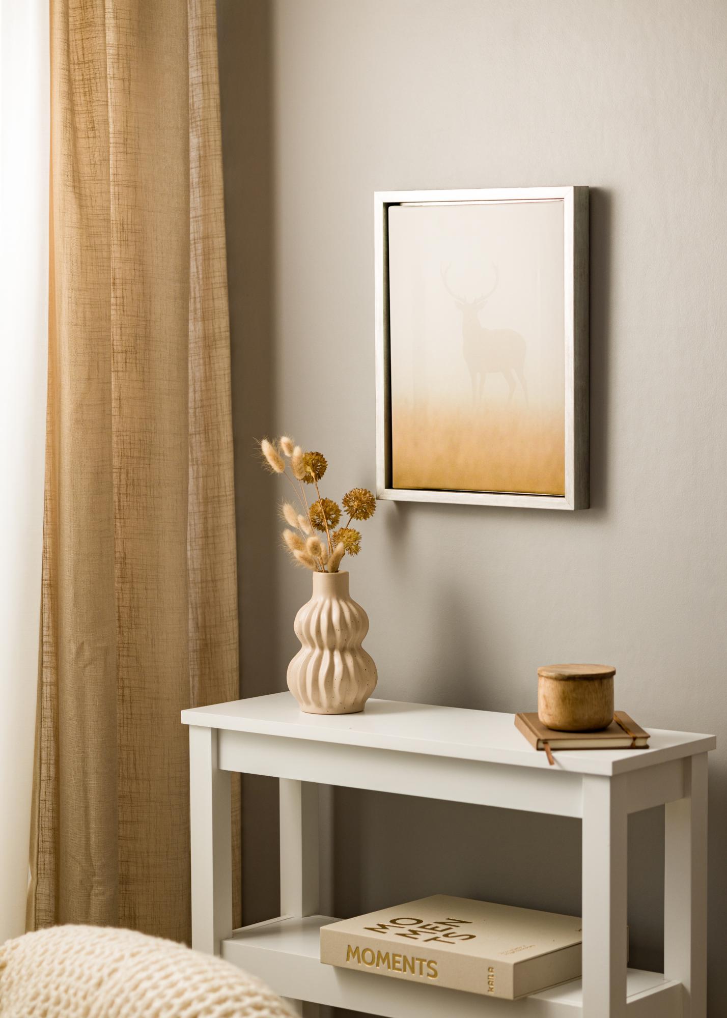 Este marco para lienzos está especialmente diseñado para adaptarse a pinturas en lienzo con una profundidad de 20-30 mm, lo que lo hace ideal para la mayoría de tamaños estándar de lienzos. Fabricado con pino de alta calidad, ofrece tanto durabilidad como una sensación natural que complementa su diseño moderno.