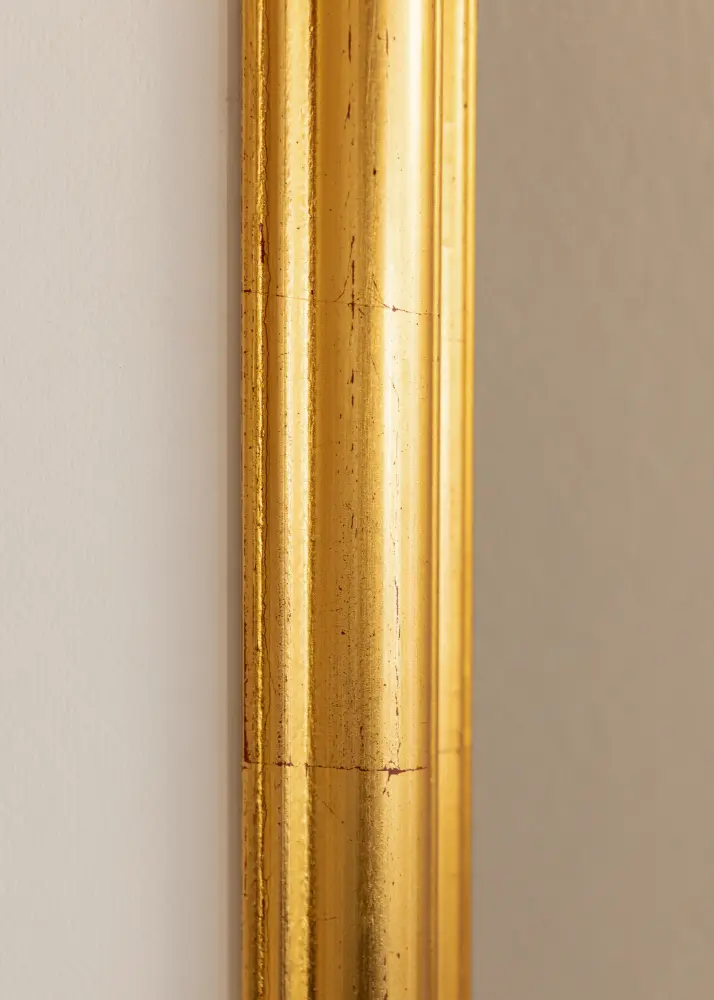 Marco Mars Oro es un marco de cuadro elegante y versátil que se fabrica en nuestro propio taller de enmarcado. Con su color dorado y superficie con pátina antigua, este marco fotográfico ofrece una belleza atemporal que realza cualquier obra de arte o fotografía. El perfil suavemente curvado y las sutiles craqueladuras dan al marco una auténtica sensación vintage, mientras que pequeños toques oscuros contribuyen a su carácter único.