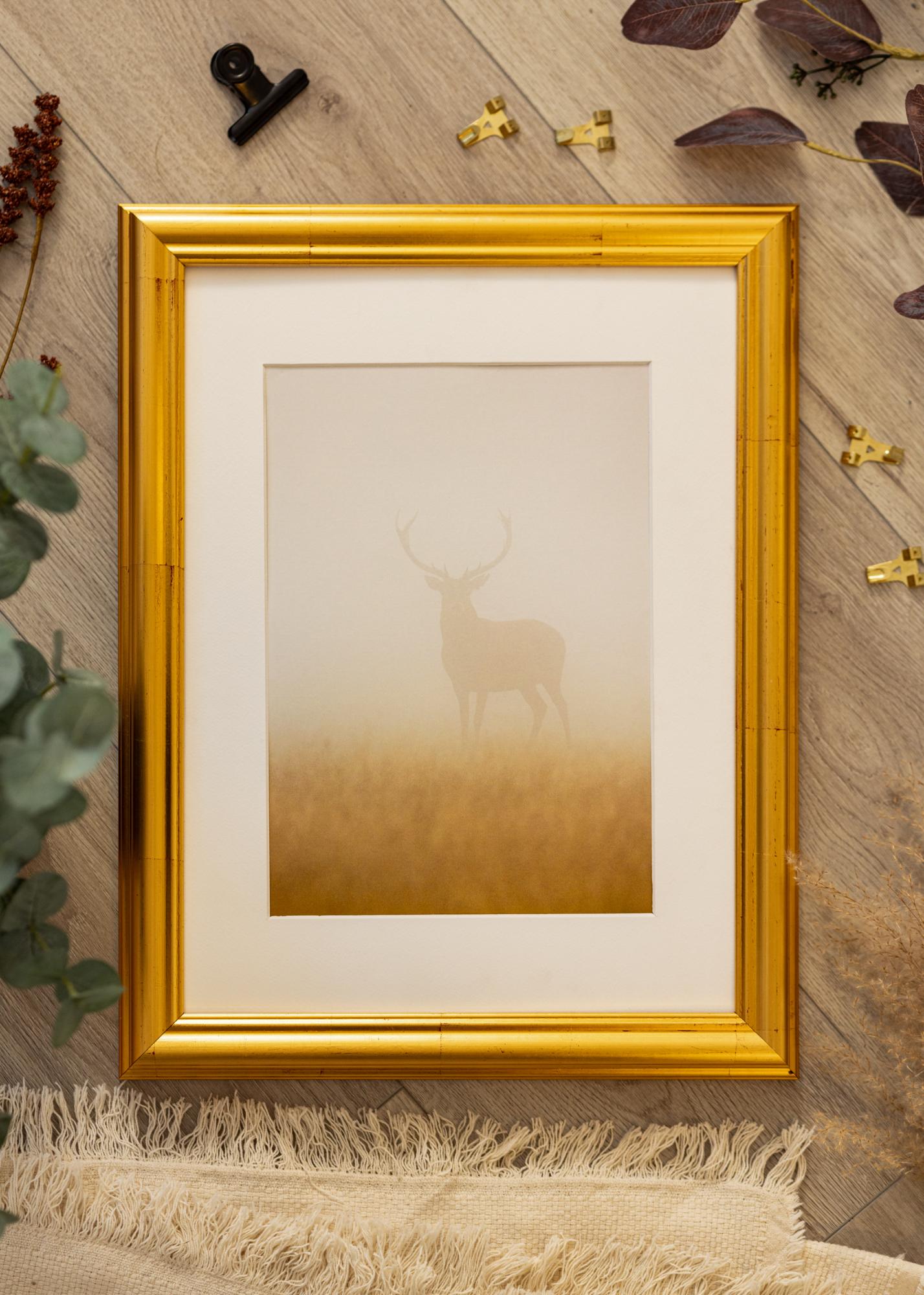 Marco Marte Oro es un marco elegante y versátil que se fabrica en nuestro propio taller de marcos. Con su color dorado y superficie envejecida, este marco para fotos ofrece una belleza atemporal que realza cualquier obra de arte o fotografía. El perfil suavemente curvado y las sutiles craqueladuras brindan al marco una auténtica sensación vintage, mientras que los pequeños detalles oscuros contribuyen a su carácter único.