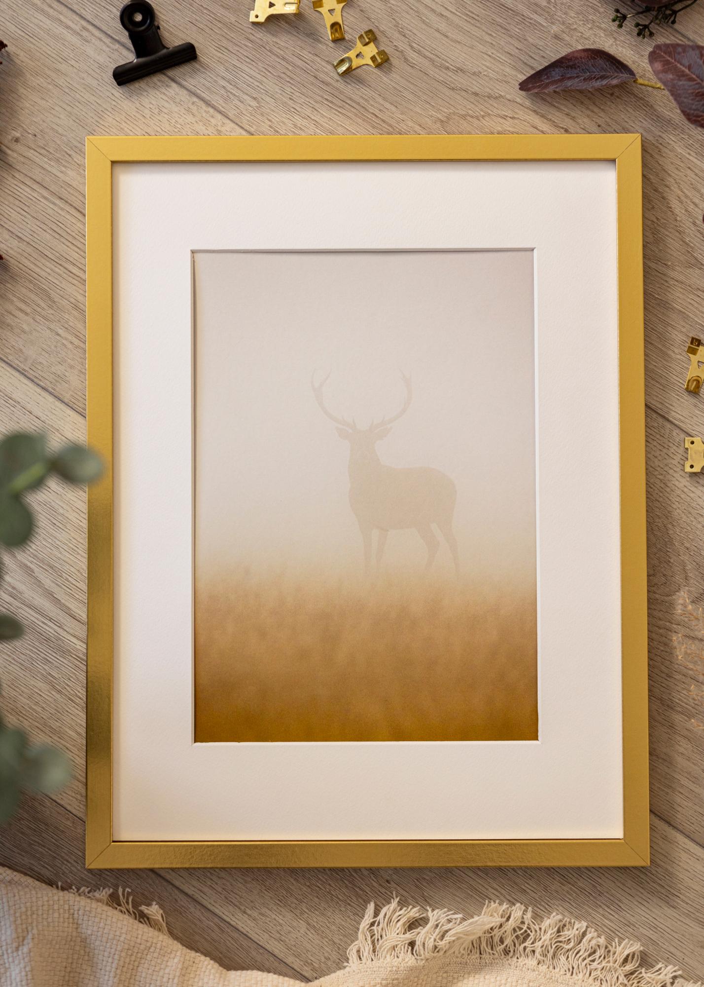 Este elegante marco dorado con passepartout es perfecto para resaltar tus fotos favoritas. Con un tamaño de imagen de 28x38 cm y un passepartout blanco se crea un hermoso enmarcado que le da a tu motivo extra profundidad y enfoque.