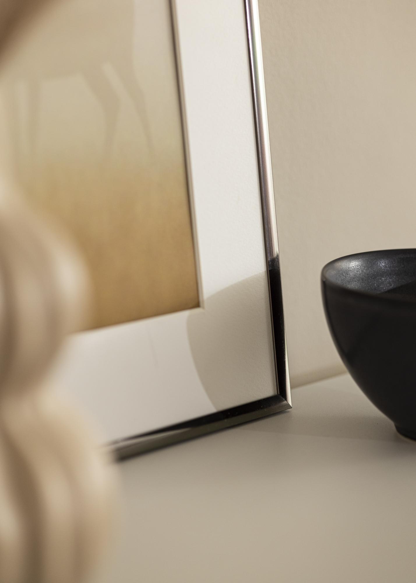 Este elegante marco de acero tiene un acabado brillante y es perfecto para fotos de tamaño 8x10 cm. El ancho del marco es de 9 mm y la profundidad de 14 mm, lo que ofrece un enmarcado elegante.