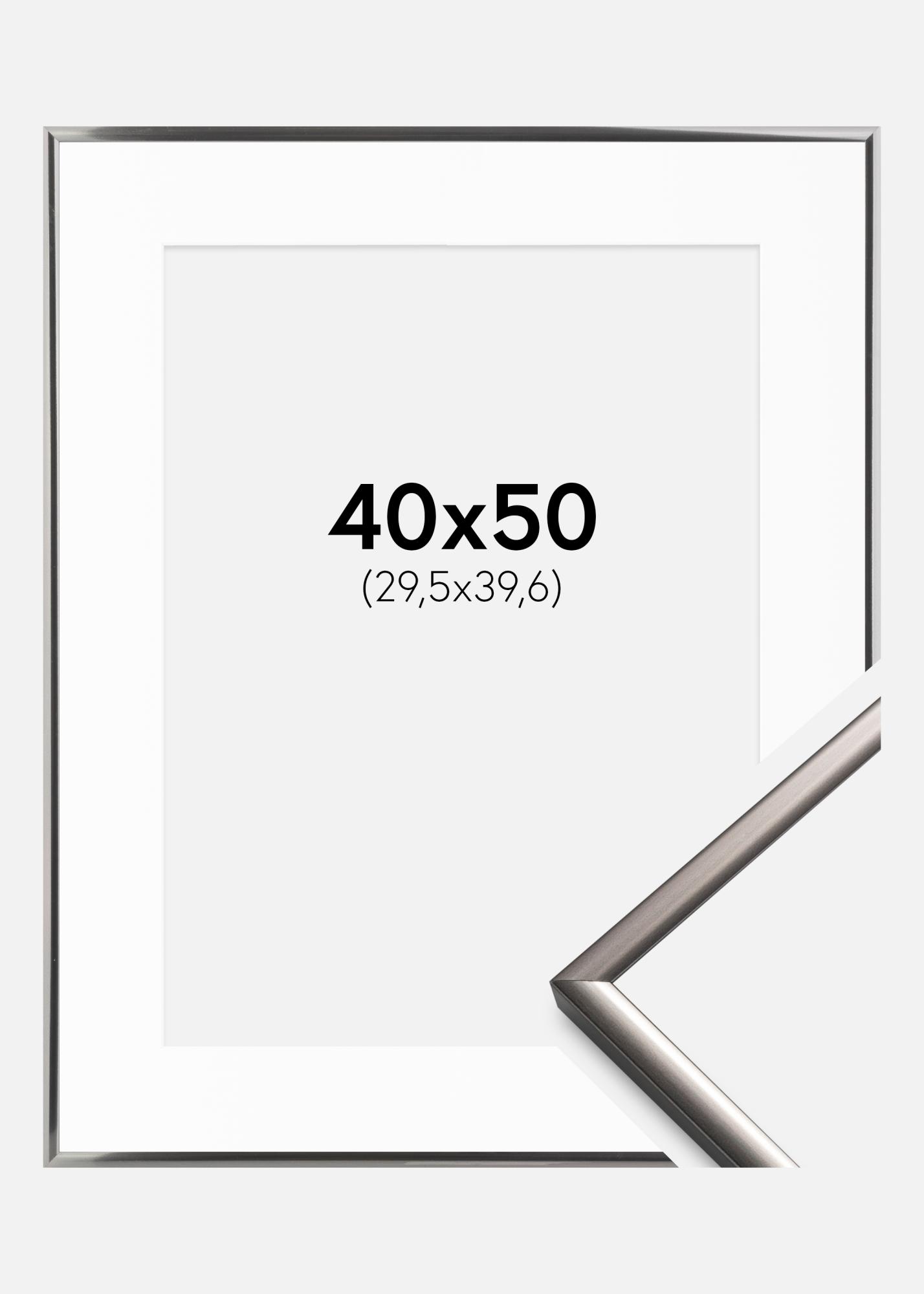 Marco New Lifestyle Acero 40x50 cm - Paspartú Blanco 12x16 inches