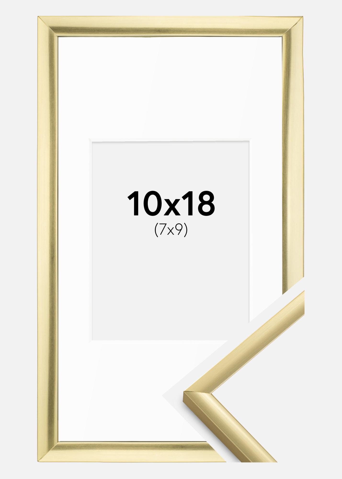 El marco tiene un ancho estrecho de 9 mm y una profundidad de 14 mm, lo que proporciona una enmarcación discreta pero estilosa. El acabado dorado mate crea una sensación atemporal que se adapta a la mayoría de los estilos de interior. El passepartout en blanco ofrece un hermoso contraste y ayuda a centrar la imagen, lo que hace que realmente capte la atención.