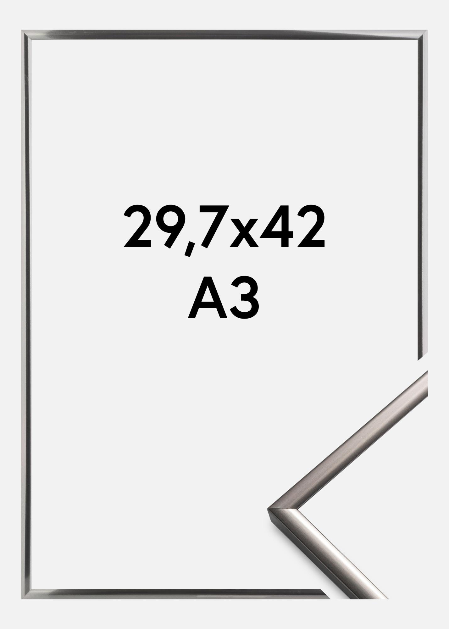 ¡Dale a tus carteles y obras de arte la atención que se merecen con este elegante marco de fotos en acero gris! Con su acabado brillante y su diseño moderno, el marco de tamaño 29,7 x 42 cm (A3) es perfecto para resaltar tu imagen elegida. No solamente es un elemento de decoración con estilo, sino también práctico con sus clips de metal giratorios que facilitan el cambio de imágenes a tu gusto.
