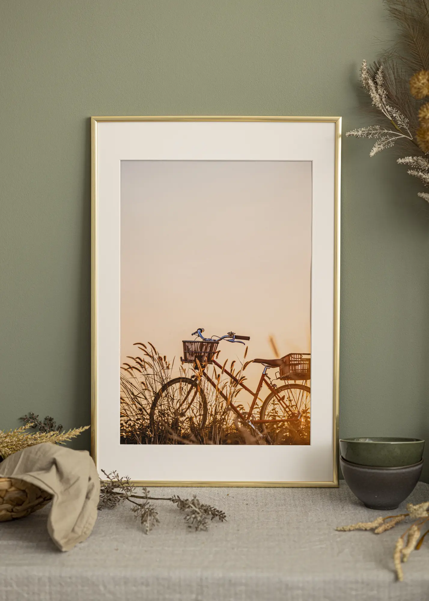 Un marco dorado con una superficie brillante es una elección moderna que se adapta tanto a la habitación de los niños como a la elegante galería de pared en la sala de estar. New Lifestyle Shiny Vidrio acrílico Dorado tiene un fino marco con un perfil ligeramente redondeado, lo que le da a tus cuadros un toque lujoso dorado mientras tus motivos se destacan. El marco tiene una parte trasera de MDF, que se mantiene en su lugar con pequeños clips de metal. Para montar tus imágenes, giras los clips, sueltas la parte trasera y colocas tu imagen en el marco.