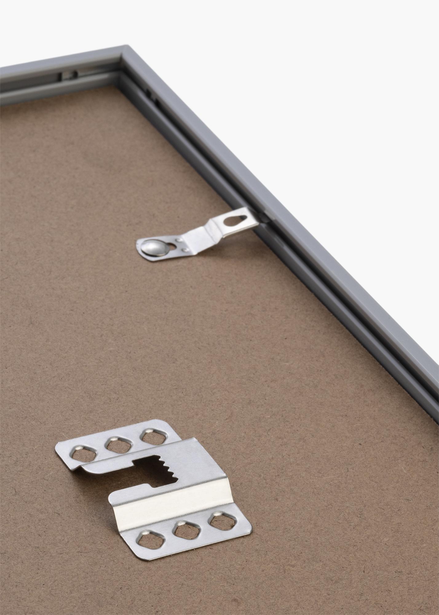 El marco tiene una moldura estrecha con un ancho de solo 9,8 mm y un perfil ligeramente redondeado. La moldura estrecha hace que el marco tenga una apariencia elegante. Este marco de fotos también tiene vidrio acrílico, que es un vidrio irrompible y ligero. Gracias a su peso ligero, los marcos de hasta 50x70 cm también se pueden montar con ganchos Adhesivo en masas para cuadros.