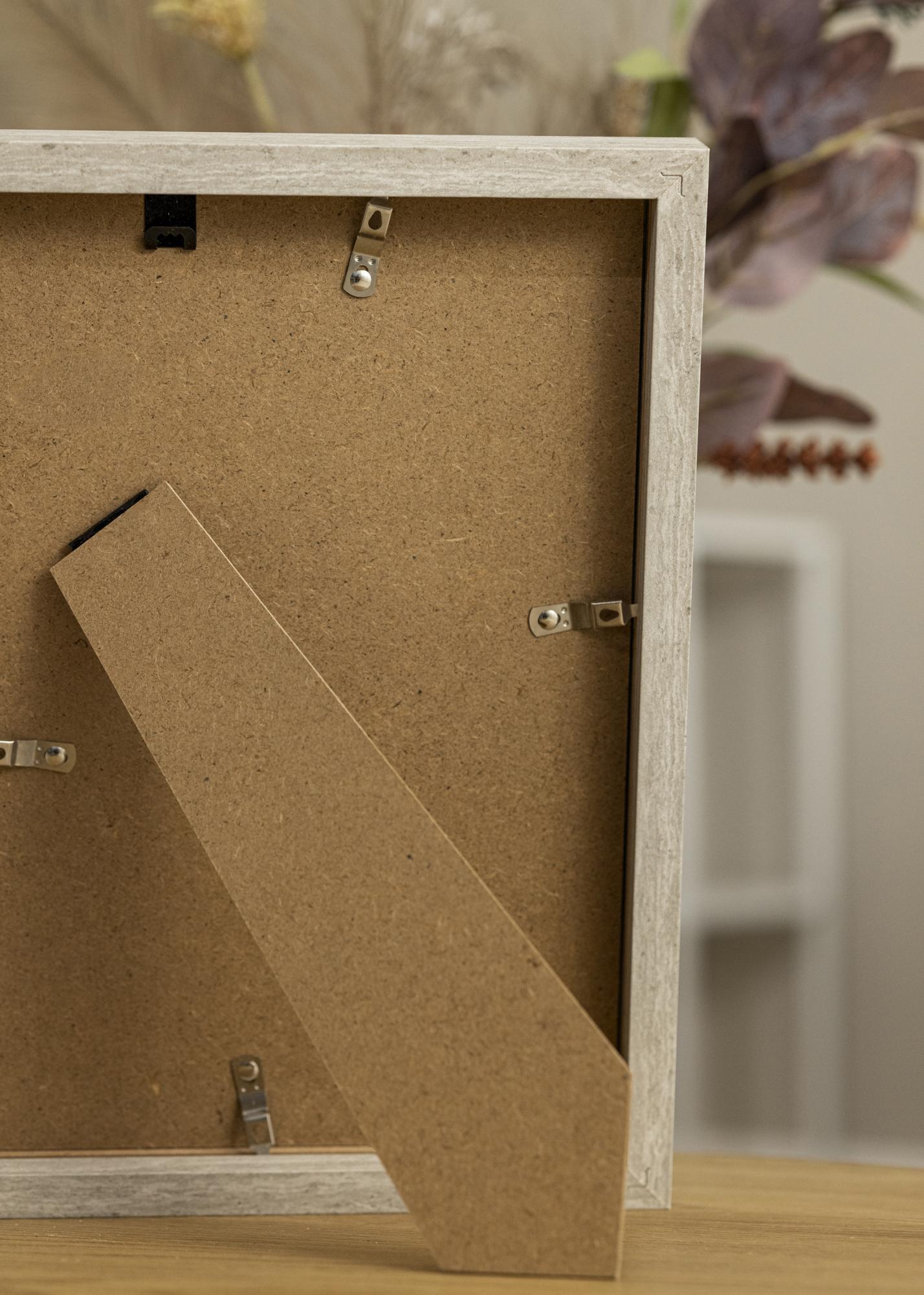 Este marco de foto está hecho de MDF y tiene una superficie mate gris con una hermosa textura de madera. El vidrio del marco es vidrio auténtico. Las imágenes y los paspartús se montan desde la parte pósterrior del marco. sencillamente gira los clips de metal que sujetan la parte trasera y luego coloca tus motivos.