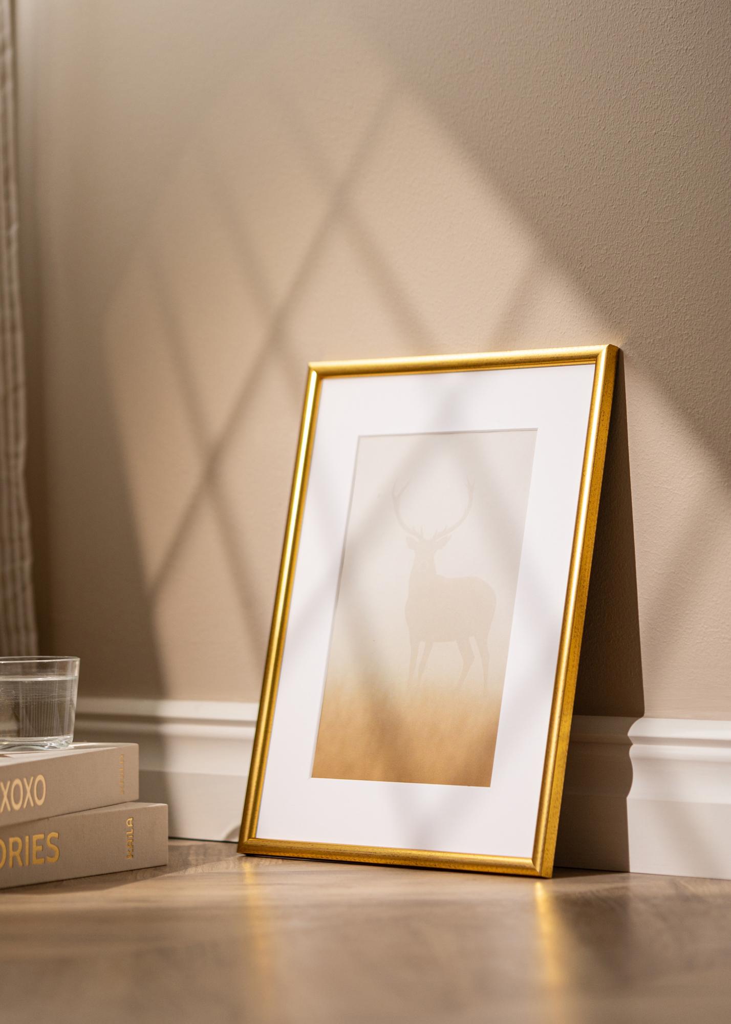 Newline Dorado tiene un perfil de marco fino (15 mm) que enfoca la atención en el motivo dentro del marco. El marco tiene un perfil dorado moteado de rojo que le da un aspecto antiguo.
