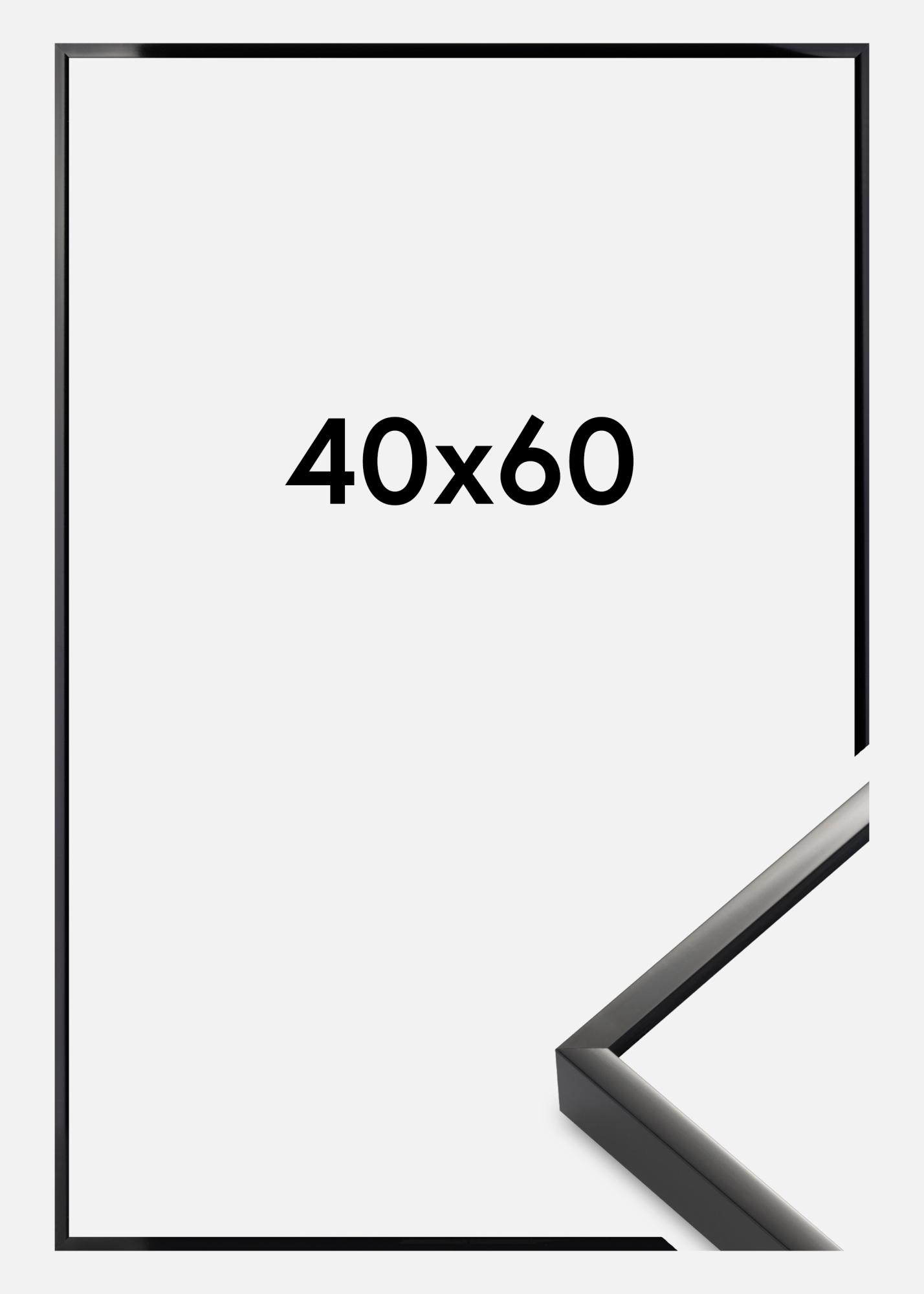 Elegante marco premium con un fino borde negro de alto brillo que se adapta perfectamente a un interior moderno y elegante. La superficie del marco y la sensación minimalista de su diseño fino lo hacen ideal para usar con pósters gráficos pósterrs y fotografías en blanco y negro. El marco de la imagen está hecho de aluminio y está disponible en muchas tamaños diferentes, lo que lo convierte en una excelente opción cuando se deseas crear una galería de pared con imágenes en varios formatos diferentes que se mantienen unidas por la elección del marco.