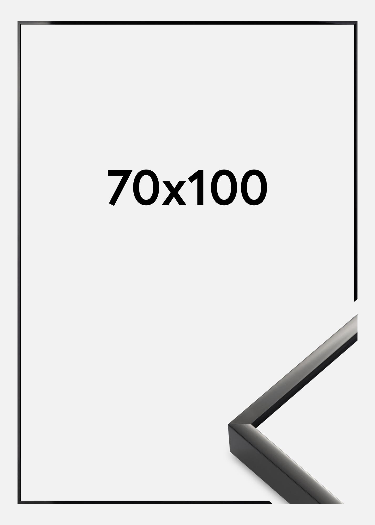 Elegante marco premium con un fino borde negro de alto brillo que se adapta perfectamente a un interior moderno y elegante. La superficie del marco y la sensación minimalista de su diseño fino lo hacen ideal para usar con pósters gráficos y fotografías en blanco y negro. El marco de la imagen está hecho de aluminio y está disponible en muchas tamaños diferentes, lo que lo convierte en una excelente opción cuando se deseas crear una pared de imágenes con diferentes formatos que se mantienen unidos por la elección del marco.