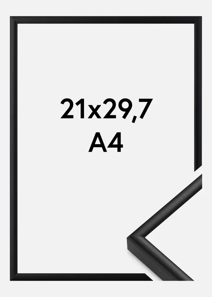Marco clásico de aluminio mate en negro con un perfil fino de diseño moderno. Este es uno de los mejores marcos de aluminio de Nielsen con alta calidad en todos los detalles. Perfecto cuando buscas un elegante marco que le dé a tu imagen un enmarcado clásico.