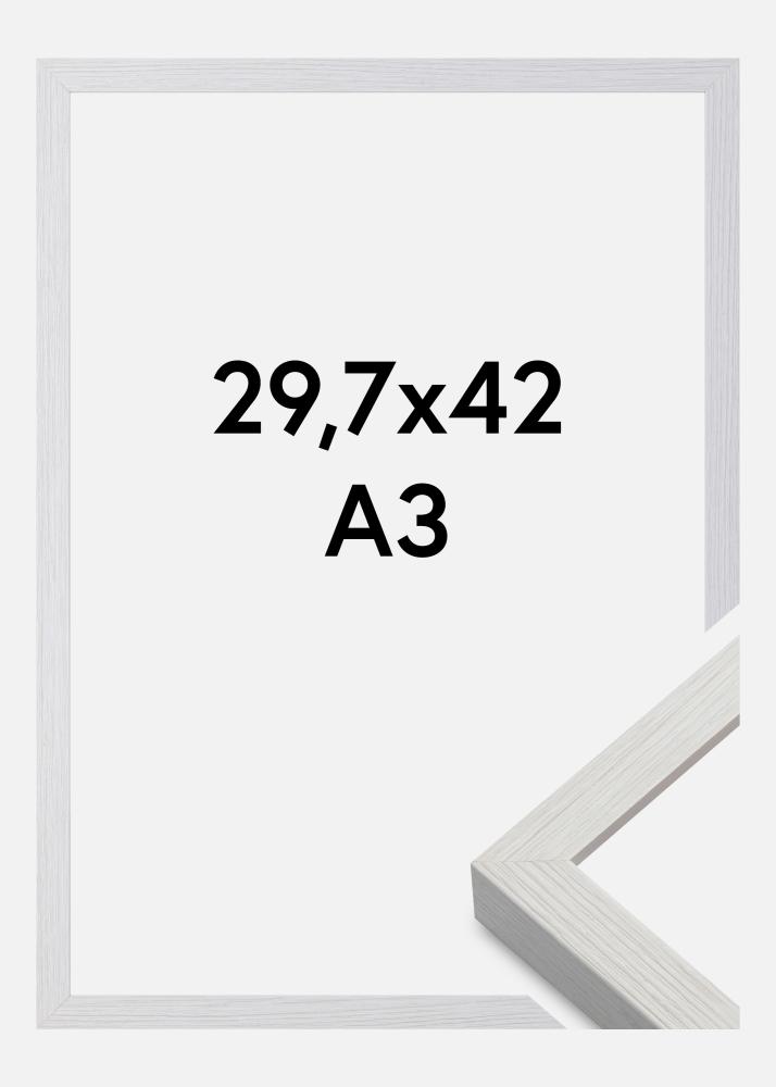 Marco de madera blanca elegante con alta calidad y una sensación grabada láser donde se destaca la veta de la madera. El fino listón del marco se adapta tanto a un estilo de decoración moderno como a un interior rural donde encaja el color blanco grabado láser. El marco es ideal para usar con pósters, acuarelas y fotografías, y está disponible en una variedad de tamaños. Combina el marco con varias fotografías en diferentes formatos y cuélgalas juntas para crear una elegante galería de pared que se convierta en el centro de atención en la pared.