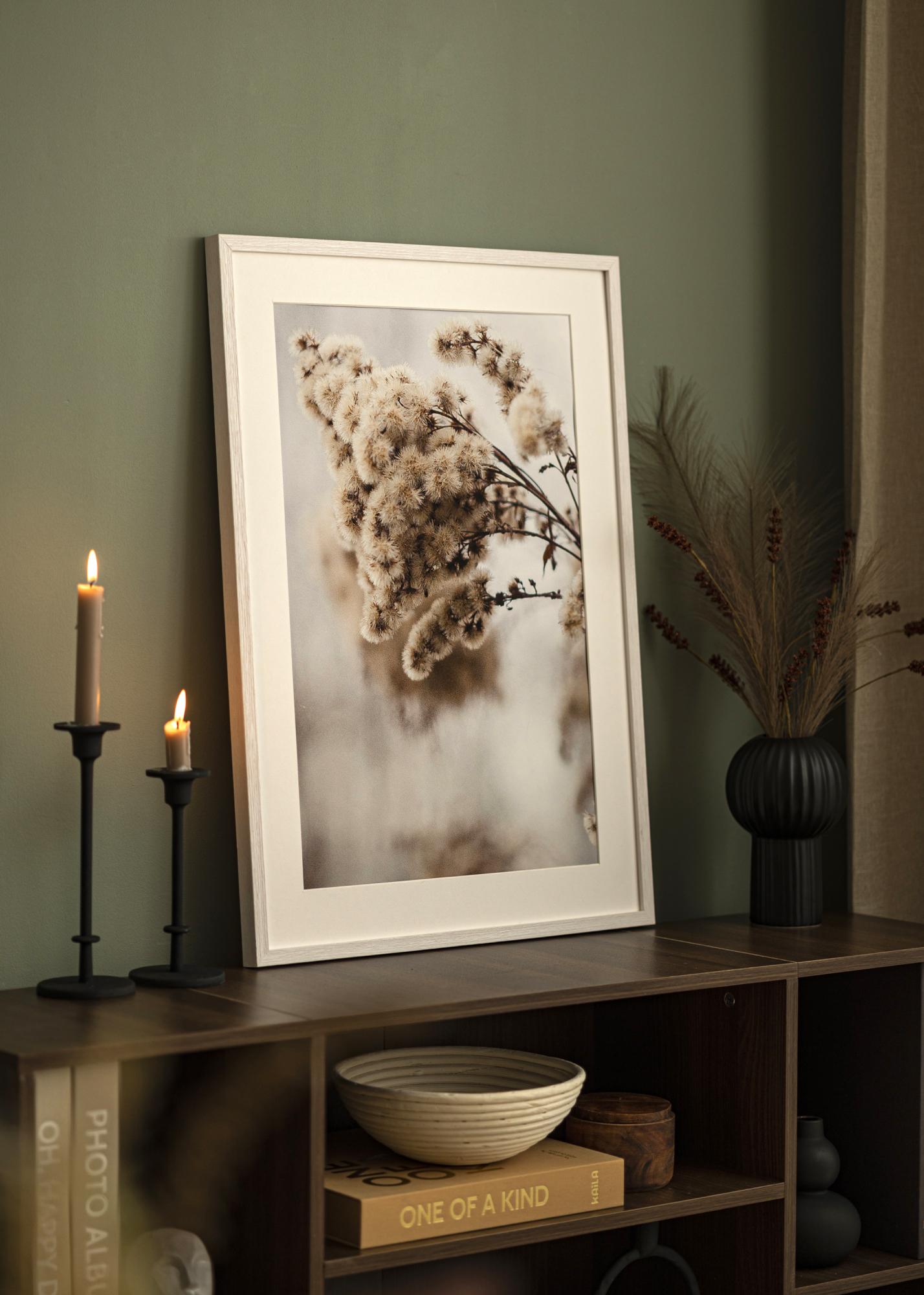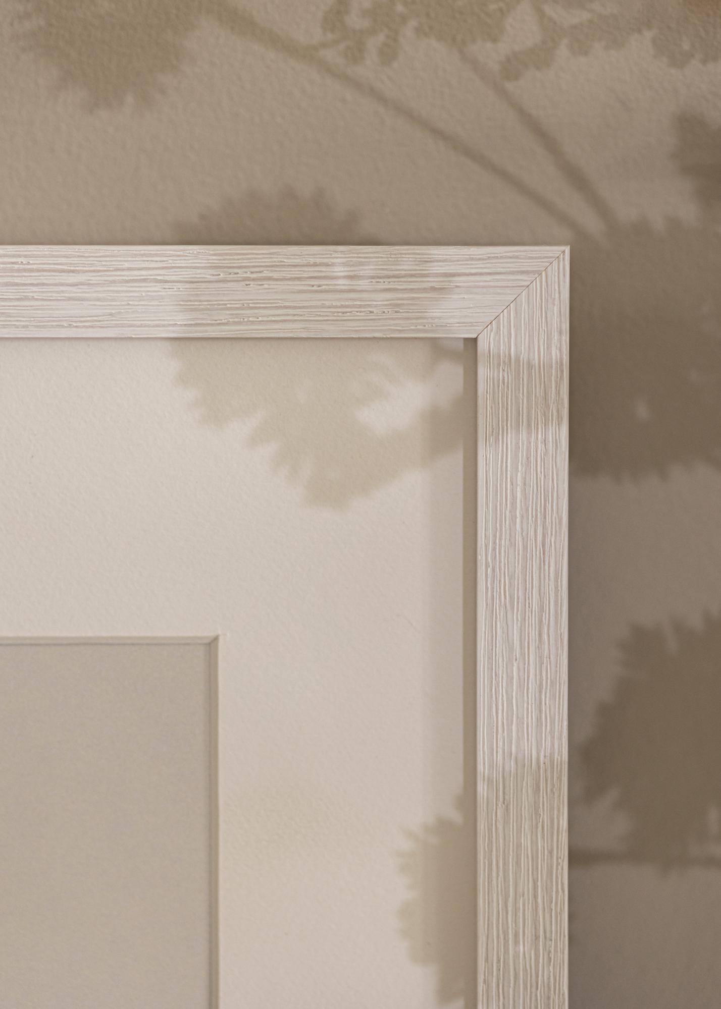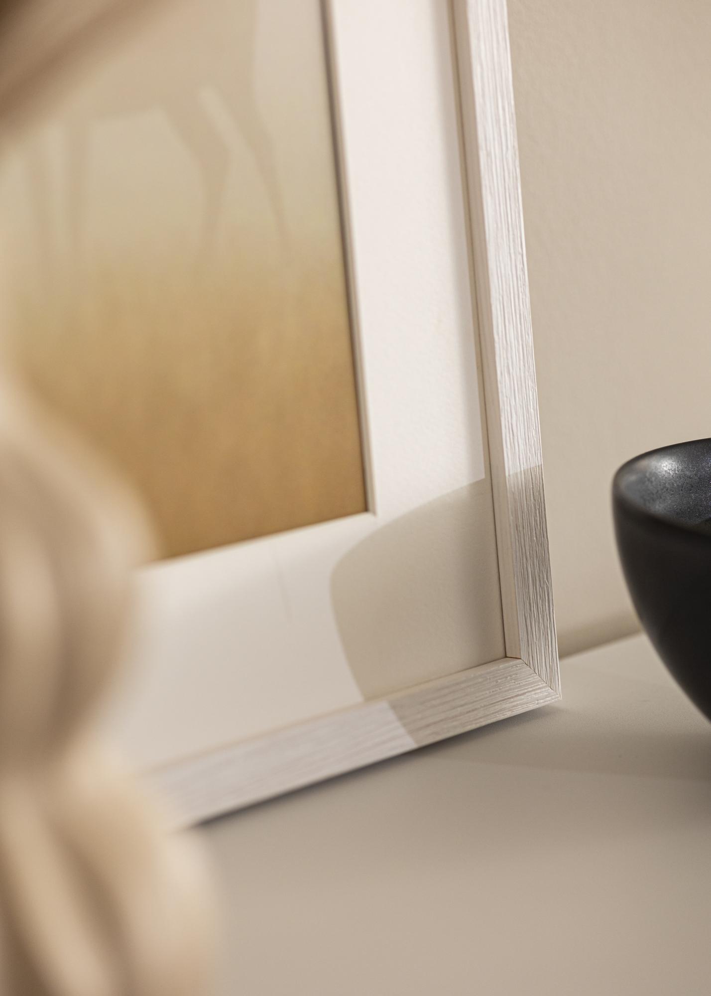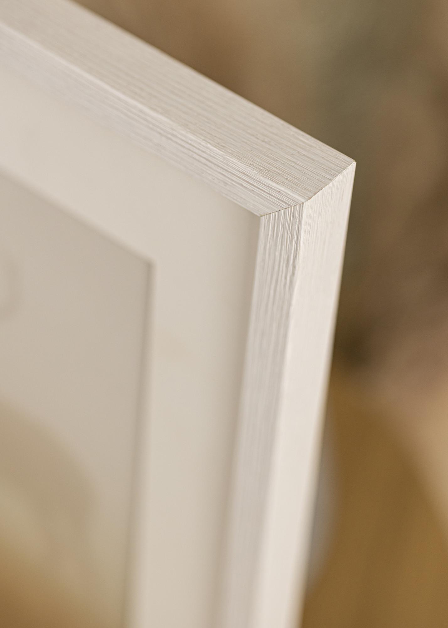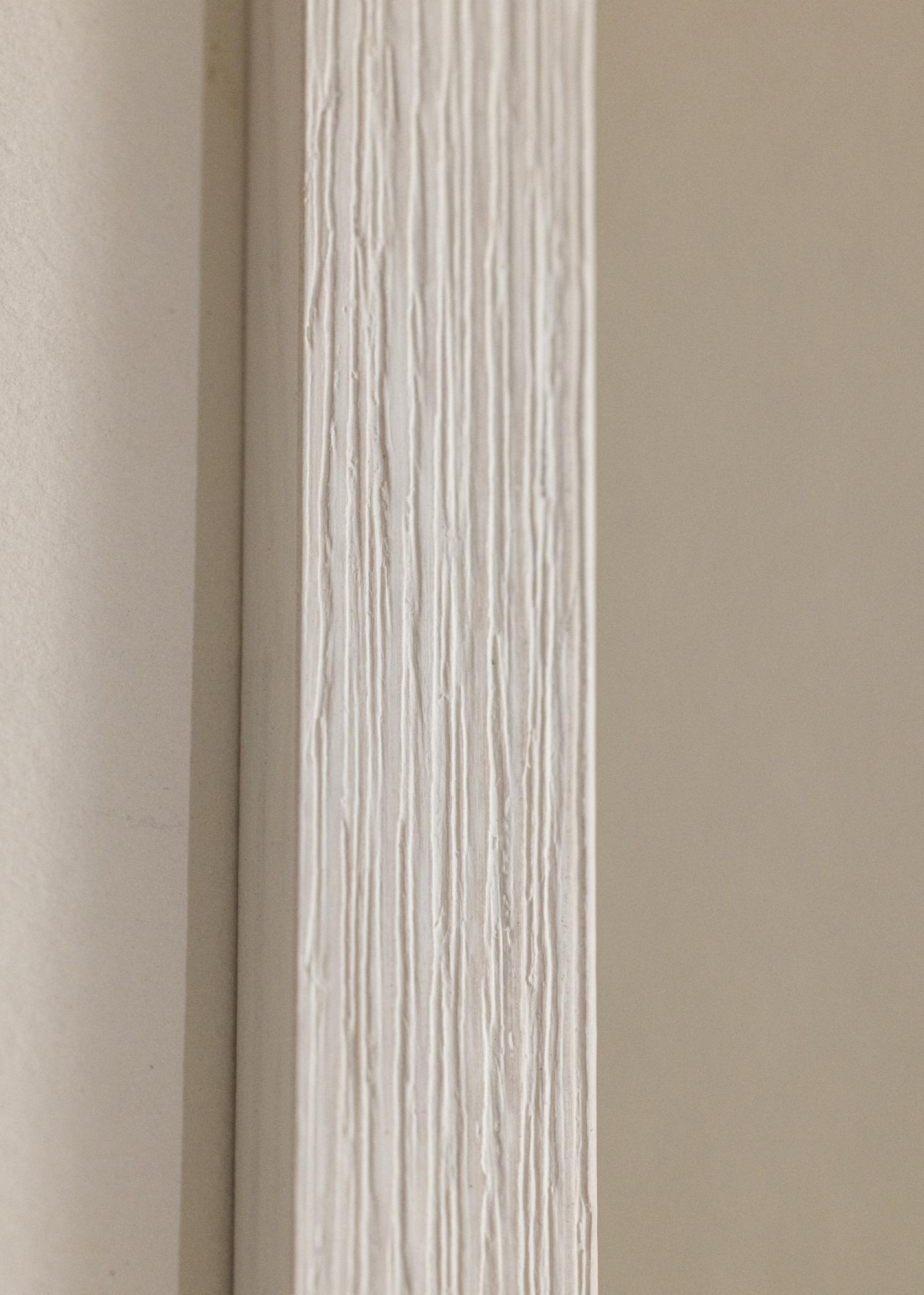 Marco de madera blanca elegante con alta calidad y una sensación grabada láser donde se destaca la veta de la madera. El fino listón del marco se adapta tanto a un estilo de decoración moderno como a un interior rural donde encaja el color blanco grabado láser. El marco es ideal para usar con pósters, acuarelas y fotografías, y está disponible en una variedad de tamaños. Combina el marco con varias fotografías en diferentes formatos y cuélgalas juntas para crear una elegante galería de pared que se convierta en el centro de atención en la pared.