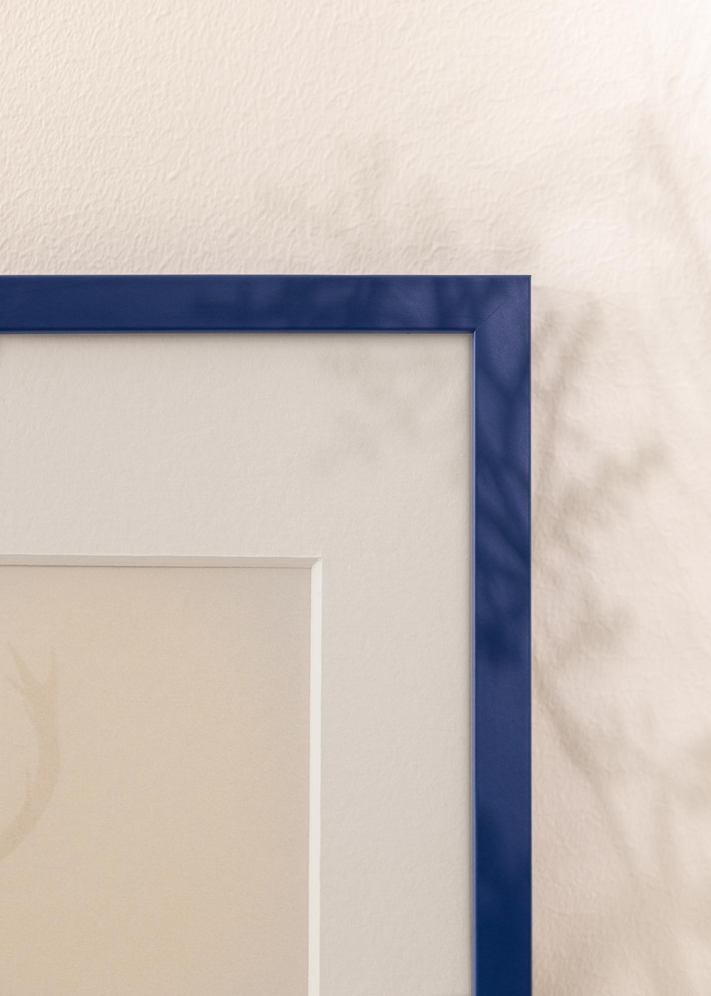 Un elegante marco de madera con un perfil cuadrado que es de la marca danesa Incado y forma parte de la serie NordicLine. El marco tiene un ancho y una profundidad de 15 mm, lo que le da una hermosa simetría y una apariencia fina al mismo tiempo que se siente sólido. El marco está foliado pero tiene una superficie mate en ese clásico tono azul oscuro que siempre es popular y nunca pasa moderno.