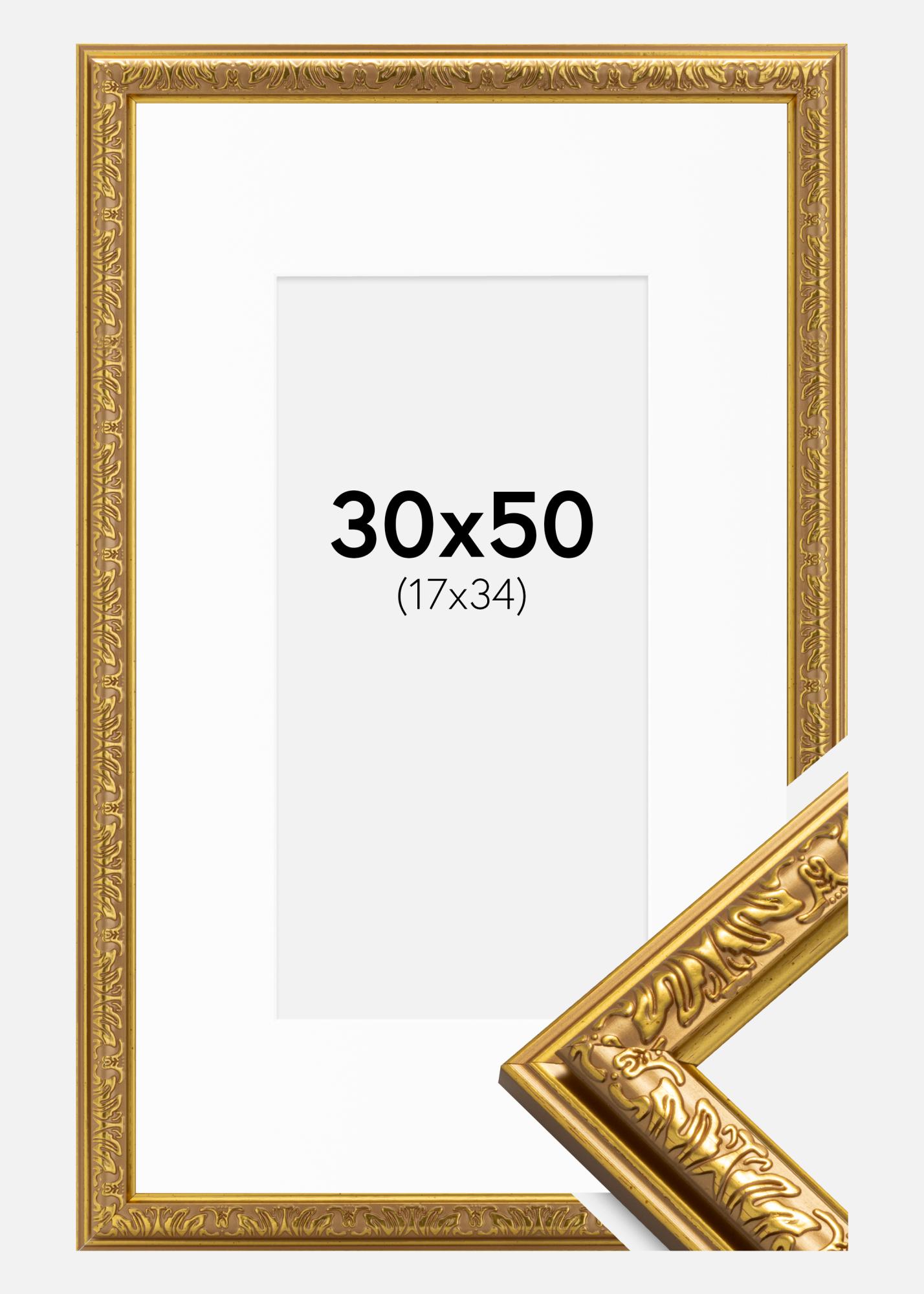 Marco Nostalgia Dorado 30x50 cm - Paspartú Blanco 18x35 cm