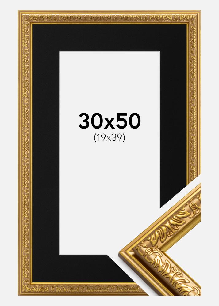 Marco Nostalgia Dorado 30x50 cm - Paspartú Negro 20x40 cm