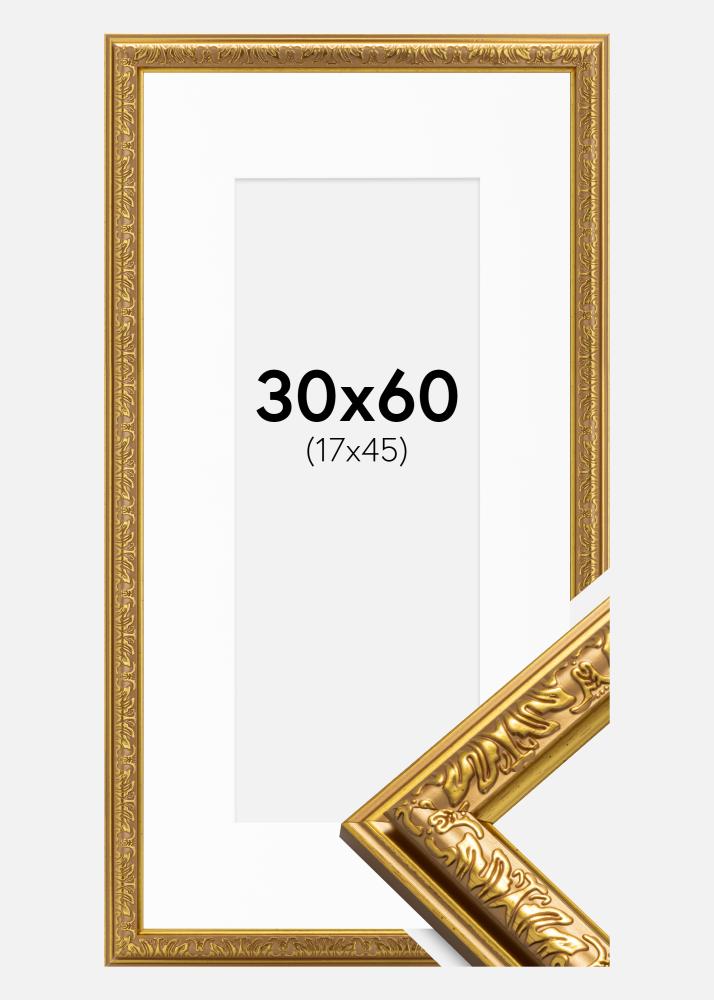 Marco Nostalgia Dorado 30x60 cm - Paspartú Blanco 18x46 cm