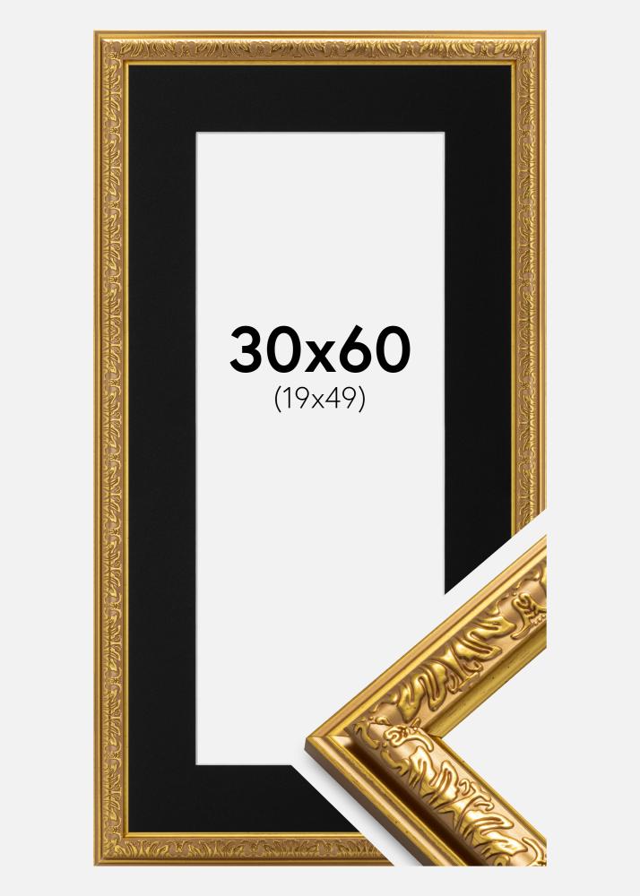 Marco Nostalgia Dorado 30x60 cm - Paspartú Negro 20x50 cm