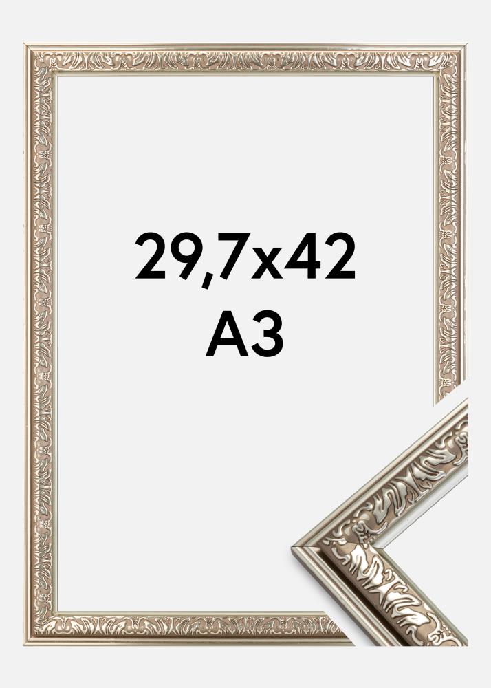 Iniciar el selector de marcos »Nostalgia es un elegante marco plateado de estilo retro con hermosos adornos. Es perfecto cuando buscas un marco retro amplio para tus mejores fotos.