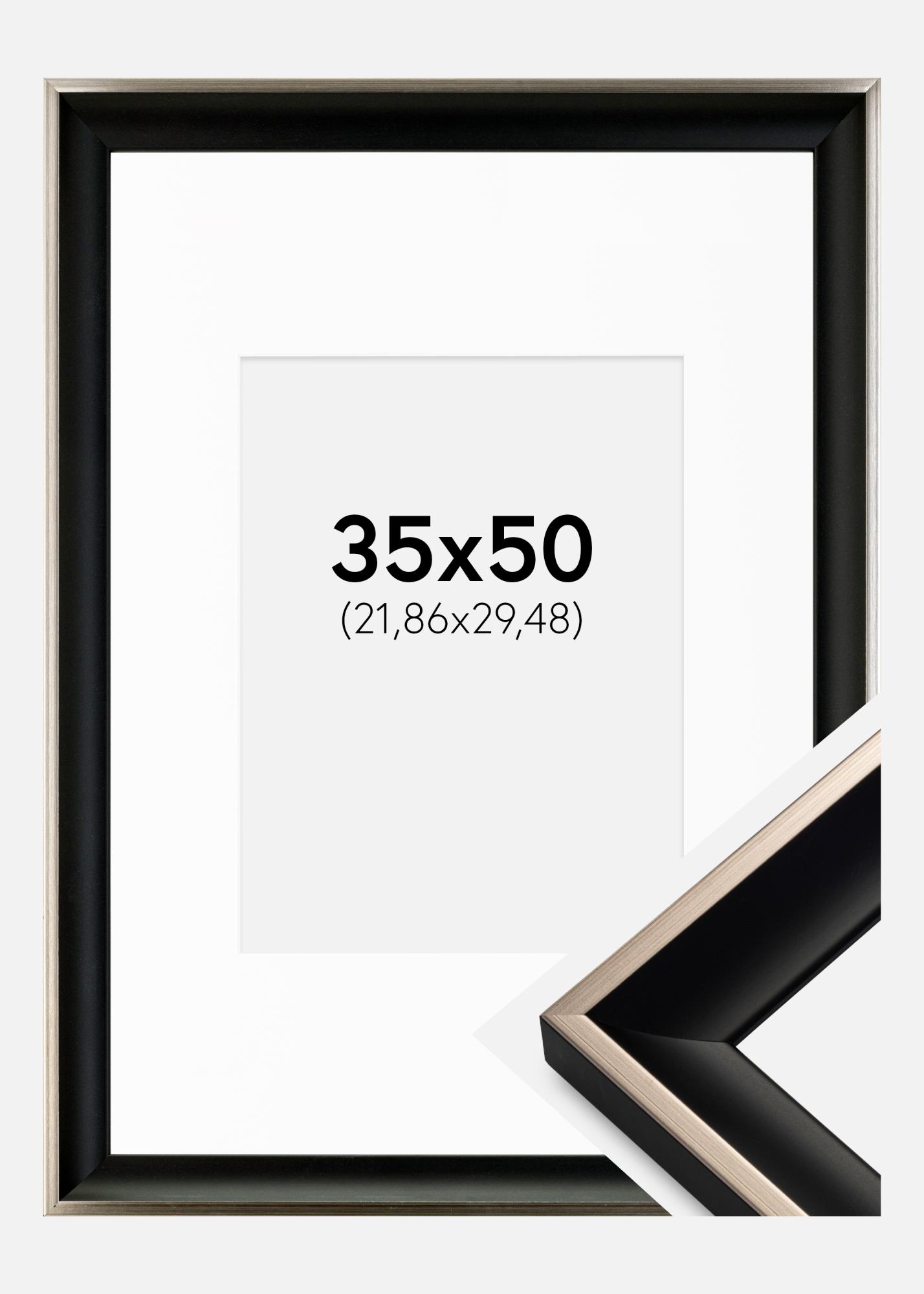 Marco Öjaren Negro-plateado 35x50 cm - Paspartú Blanco 9x12 inches