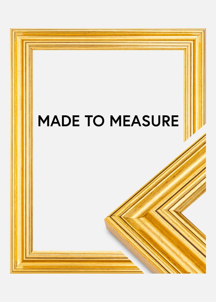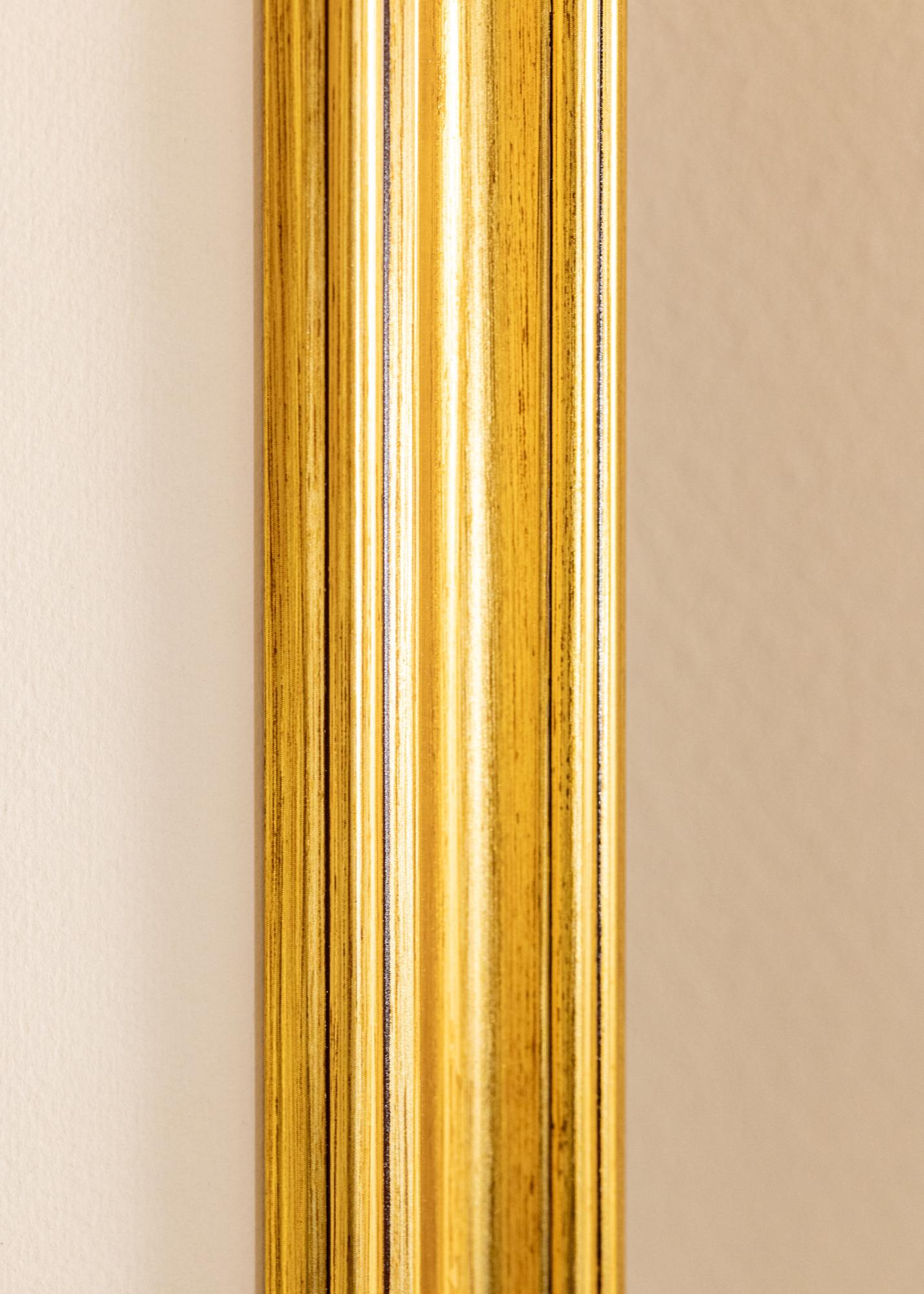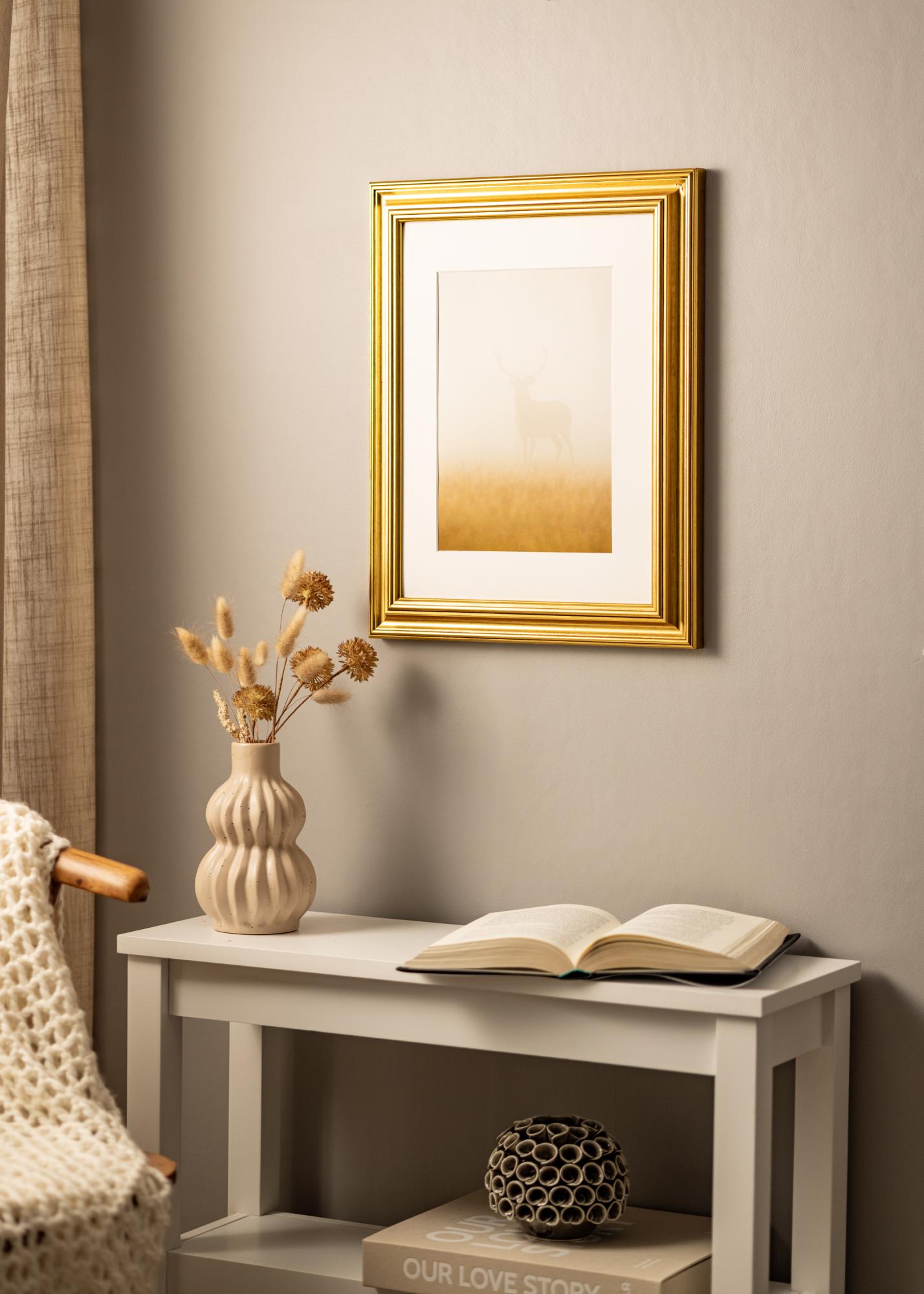 Marco de madera dorado exclusivo con un perfil clásico y pintado a mano, que le da vida y un brillo hermoso. Un marco elegante para enmarcar paisajes, retratos y bodegones, o incluso para crear un contraste interesante con un póster gráfico sencillo. Los marcos dorados se adaptan tanto a hogares decorados de forma antigua como a apartamentos urbanos que buscan un toque elegante. Cuelgue varios cuadros con diferentes estilos en marcos dorados juntos para crear una galería de pared.