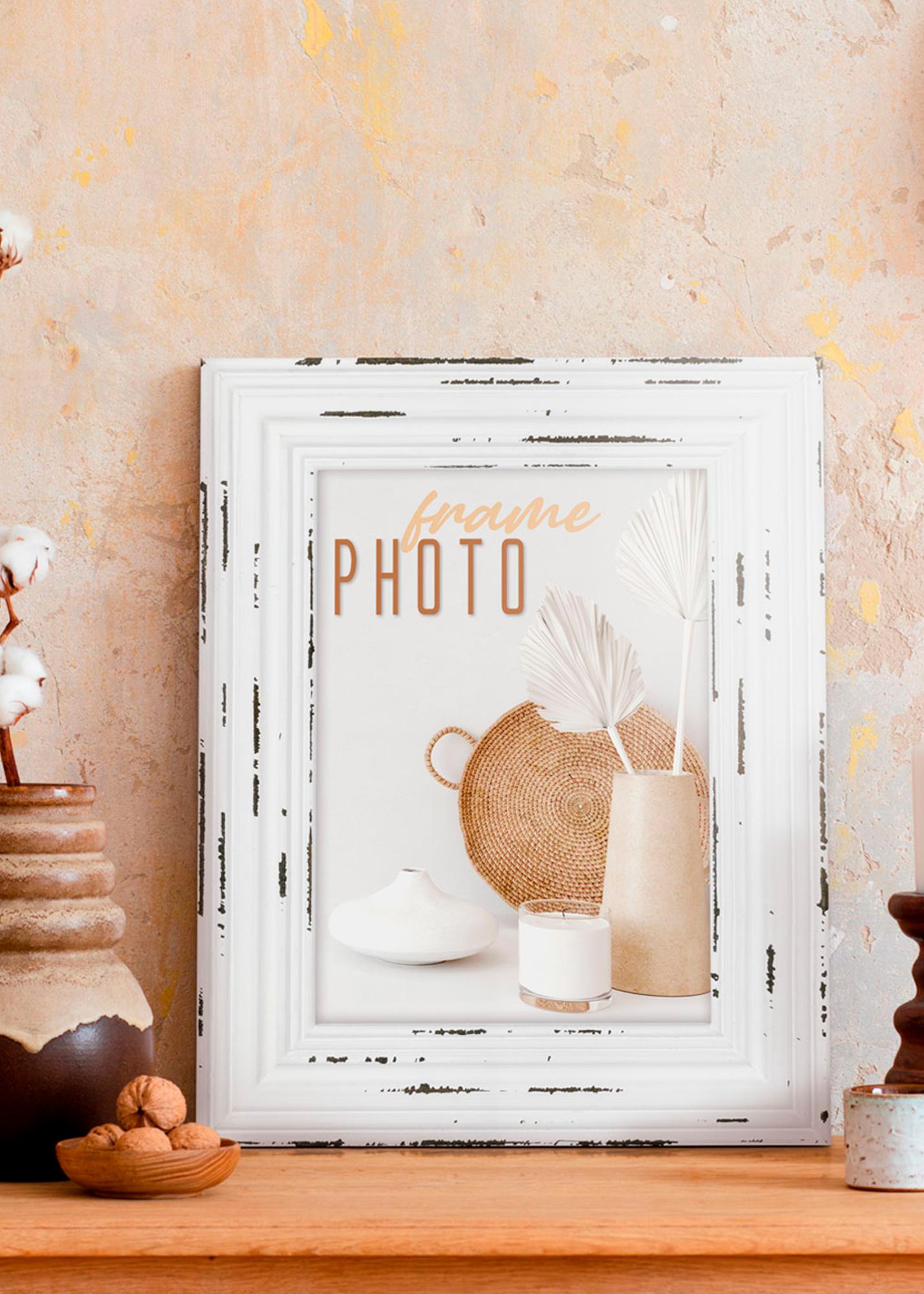 Dale a tus recuerdos un marco único con este encantador marco de fotos de estilo vintage. Con dimensiones de 10x15 cm, es perfecto para resaltar tus fotos favoritas. Su superficie envejecida en blanco se complementa con toques oscuros que le dan una sensación auténtica de épocas pasadas.