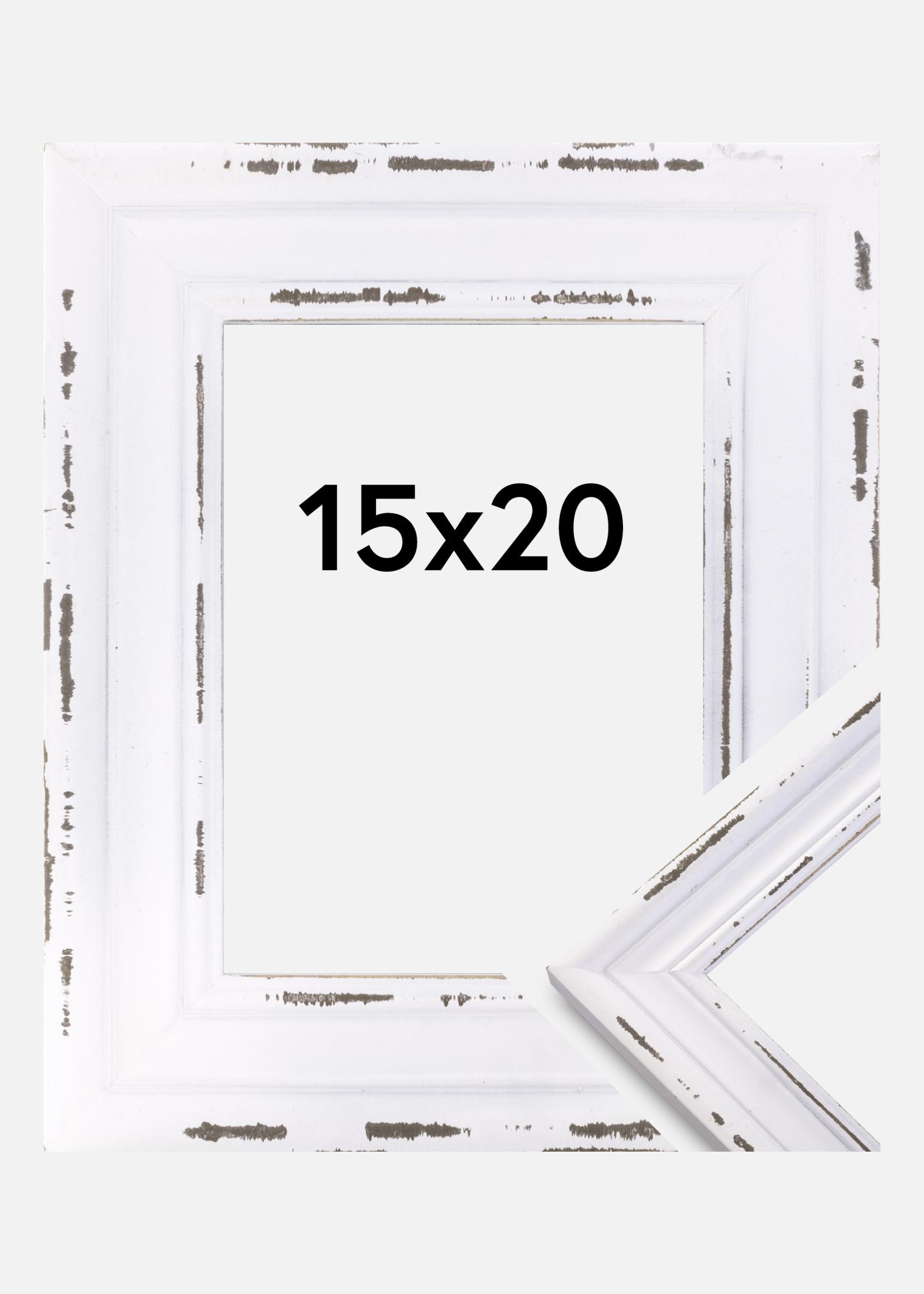 Si no tienes la suerte de heredar antiguas fotografías familiares enmarcadas, tendrás que crear estos cuadros por tu cuenta. Aquí tenemos un marco decorativamente desgastado que es perfecto para este propósito. El marco es blanco con un perfil clásico y partes desgastadas donde se puede ver la madera. ¡Elige entre una variedad de tamaños!