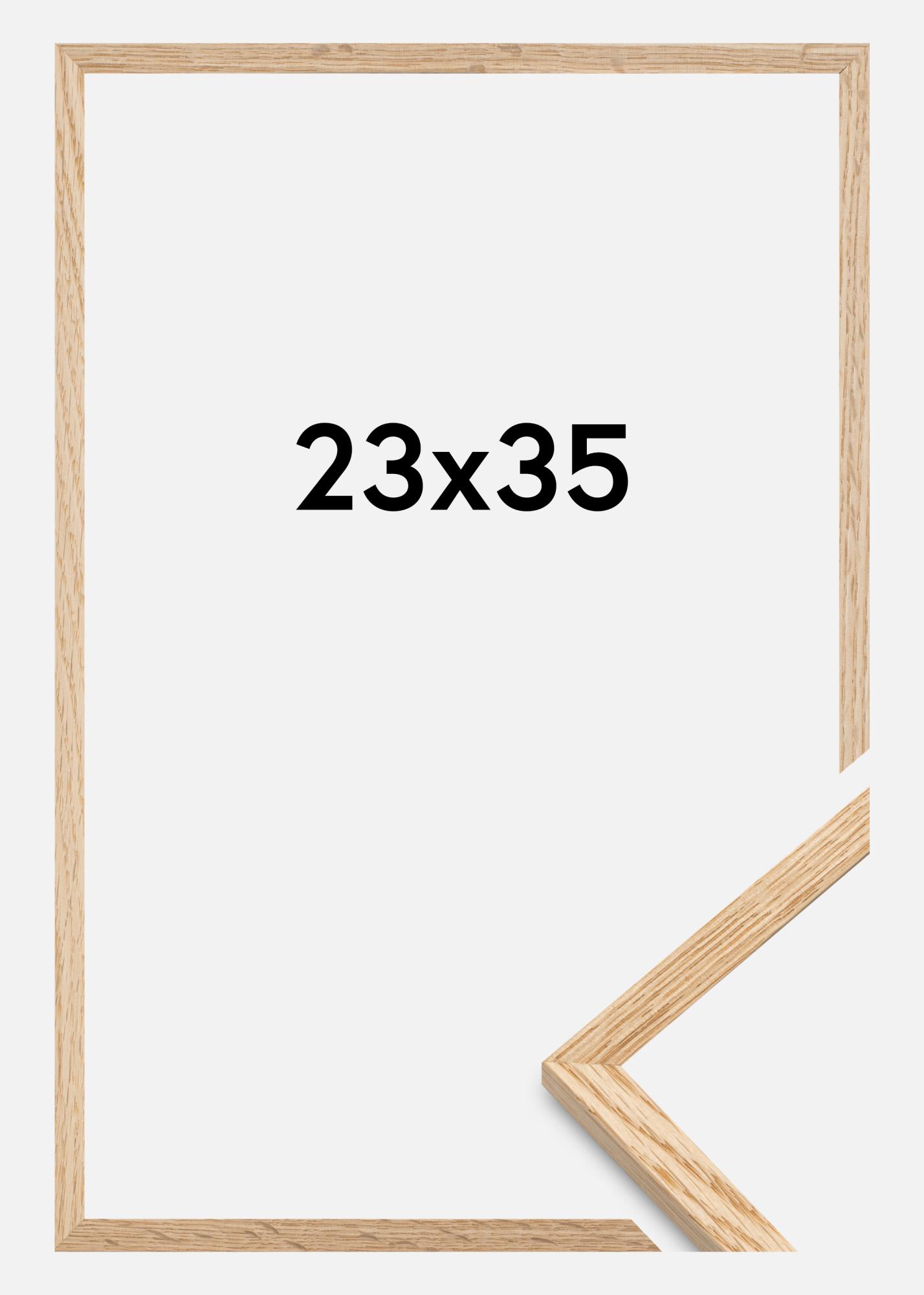 El marco está hecho en madera de roble en un tono natural con una superficie sin tratar. Está equipado con vidrio acrílico, un vidrio ligero y resistente a roturas, ¡y al mismo tiempo tiene la misma nitidez que el vidrio común!