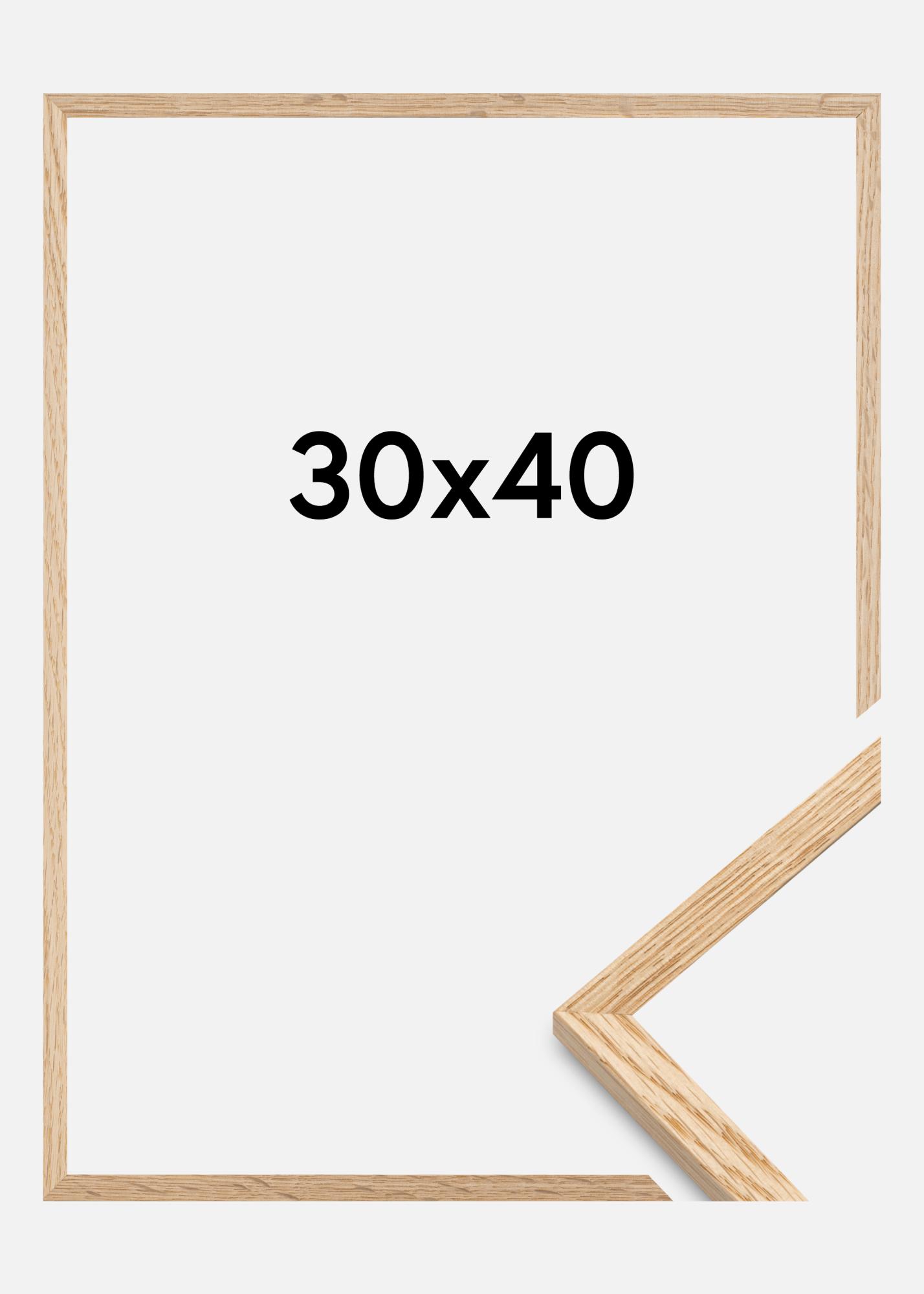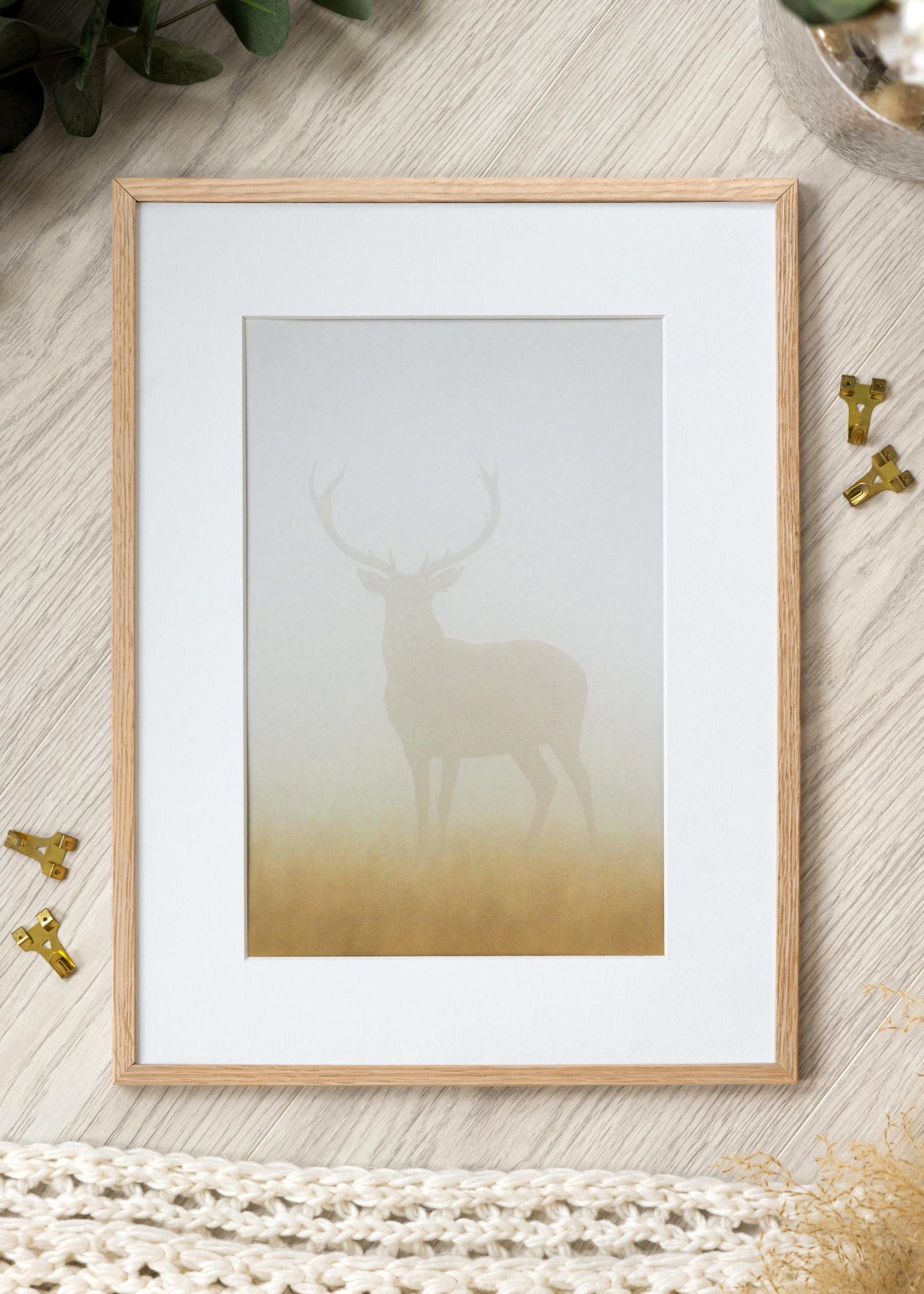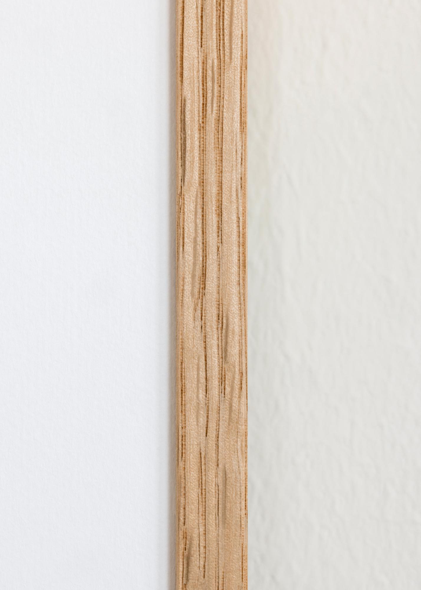 El marco está hecho de madera de roble y tiene un tono natural con una superficie sin tratar. Está equipado con vidrio acrílico, cuyas ventajas son que es ligero y no se astilla, al mismo tiempo que tiene la misma nitidez clara que el vidrio normal.