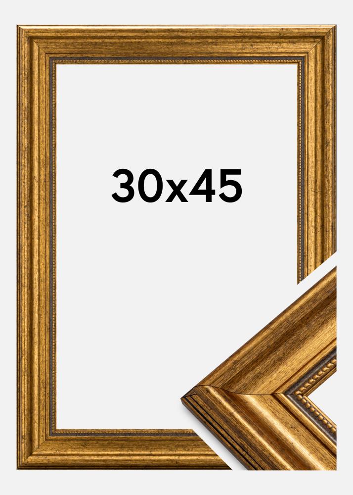 Dale a tus imágenes un marco real con este perfilado y amplio marco dorado de estilo rococó. Con sus impresionantes dimensiones de 30x45 cm, se convierte en el centro de atención en cualquier pared. El diseño elegante y el tono dorado rico resaltan cualquier obra de arte o foto.