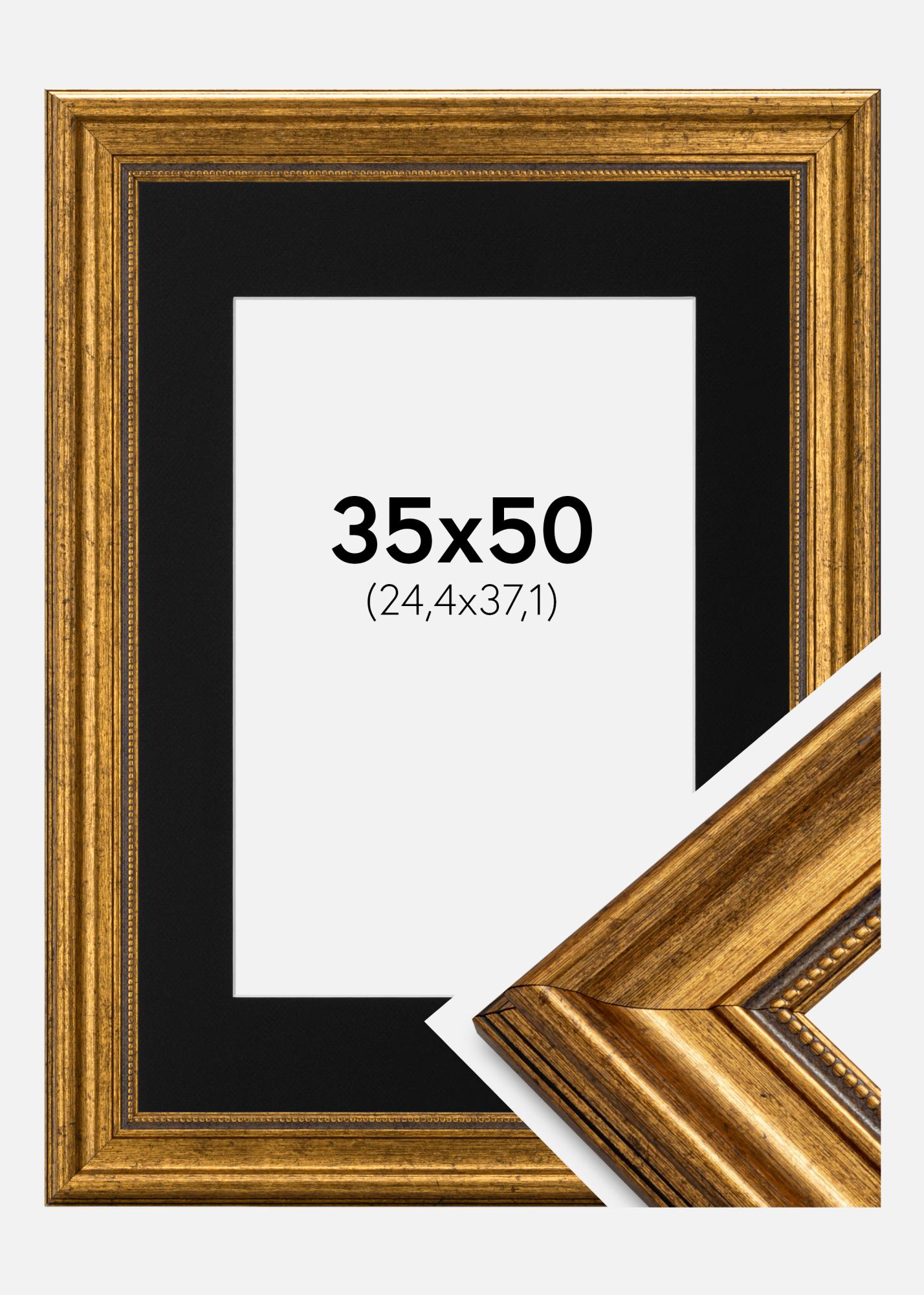 Marco Rokoko Dorado 35x50 cm - Paspartú Negro 10x15 inches