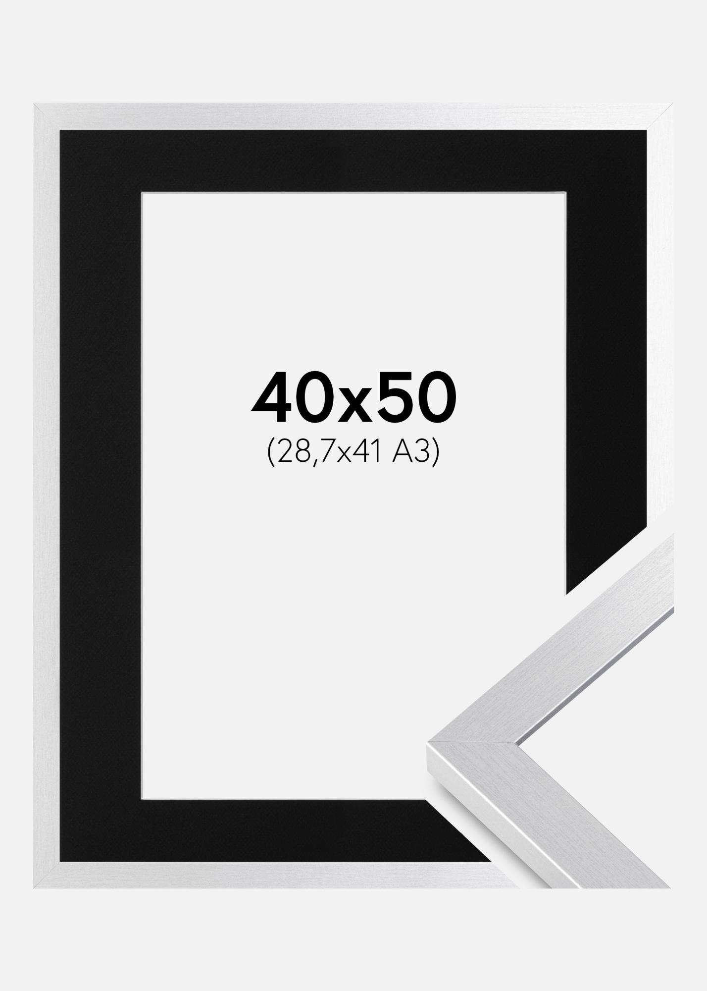Marco Selection Plateado 40x50 cm - Paspartú Negro 29,7x42 cm (A3)