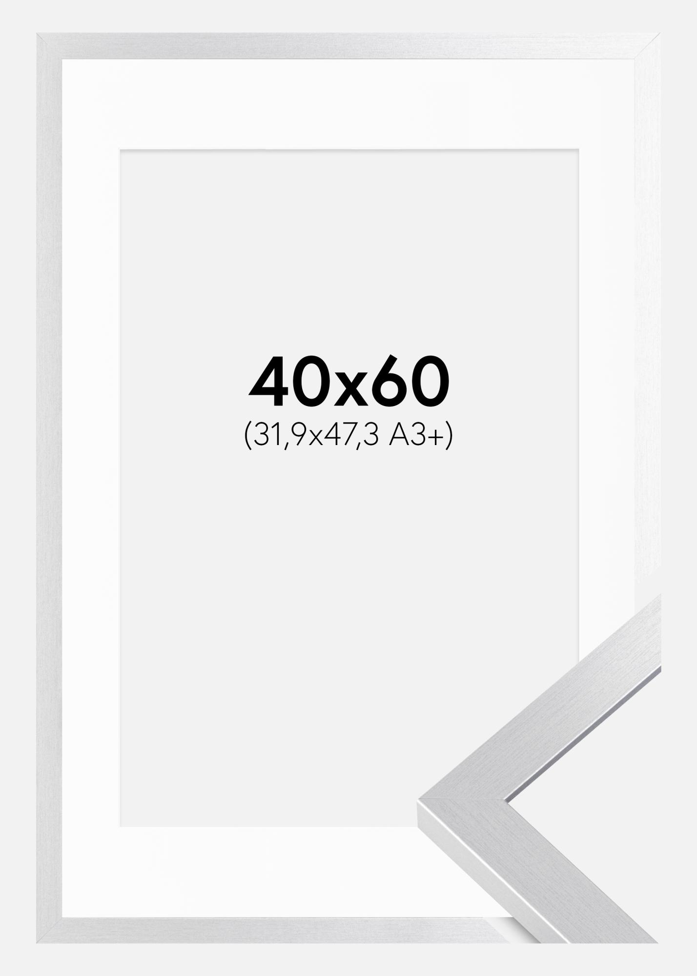 Marco Selection Plateado 40x60 cm - Paspartú Blanco 32,9x48,3 cm (A3+)