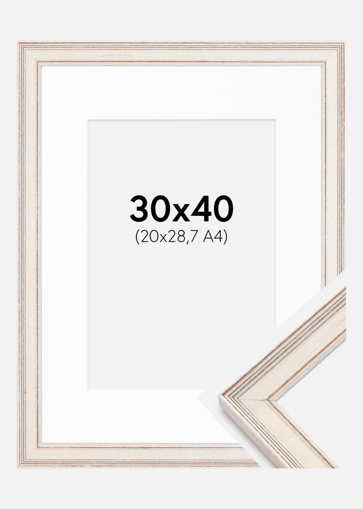 Marco Shabby Chic Blanco 30x40 cm - Paspartú Blanco 21x29,7 cm (A4)