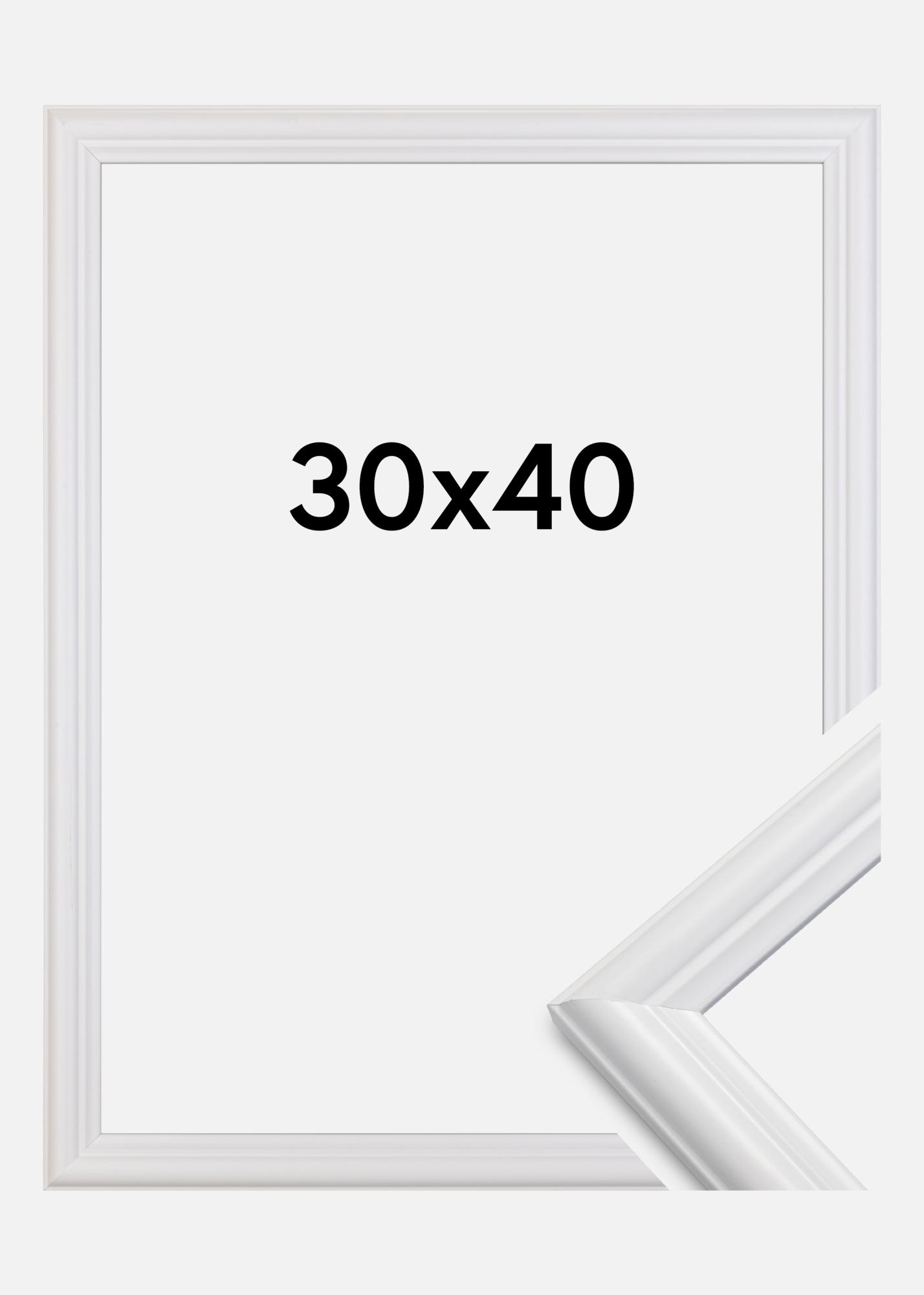 El marco Siljan Marco Blanco tiene un listón de madera de perfil clásico que está pintado de color blanco.