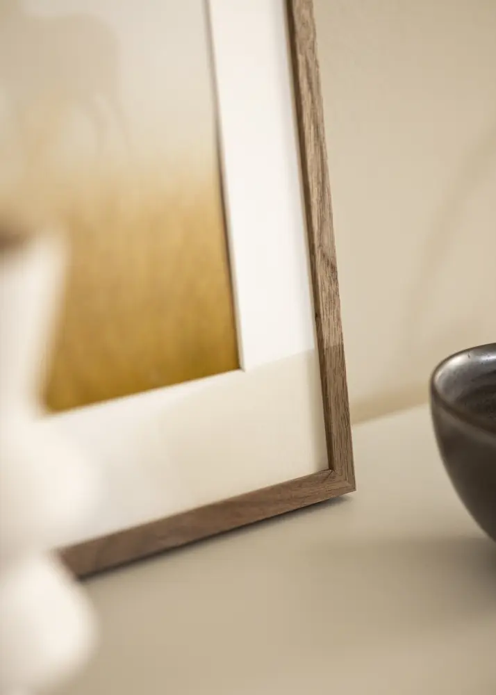 Dale a tus paredes un toque natural con este elegante marco de nogal en tamaño 30x40 cm. Fabricado con auténtico chapa de nogal sin tratar, este marco de foto ofrece una oportunidad única de personalizar su apariencia con tinte o pintura. El ancho sutil del listón, de solo 13,5 mm, complementa sin dominar su obra de arte elegida.