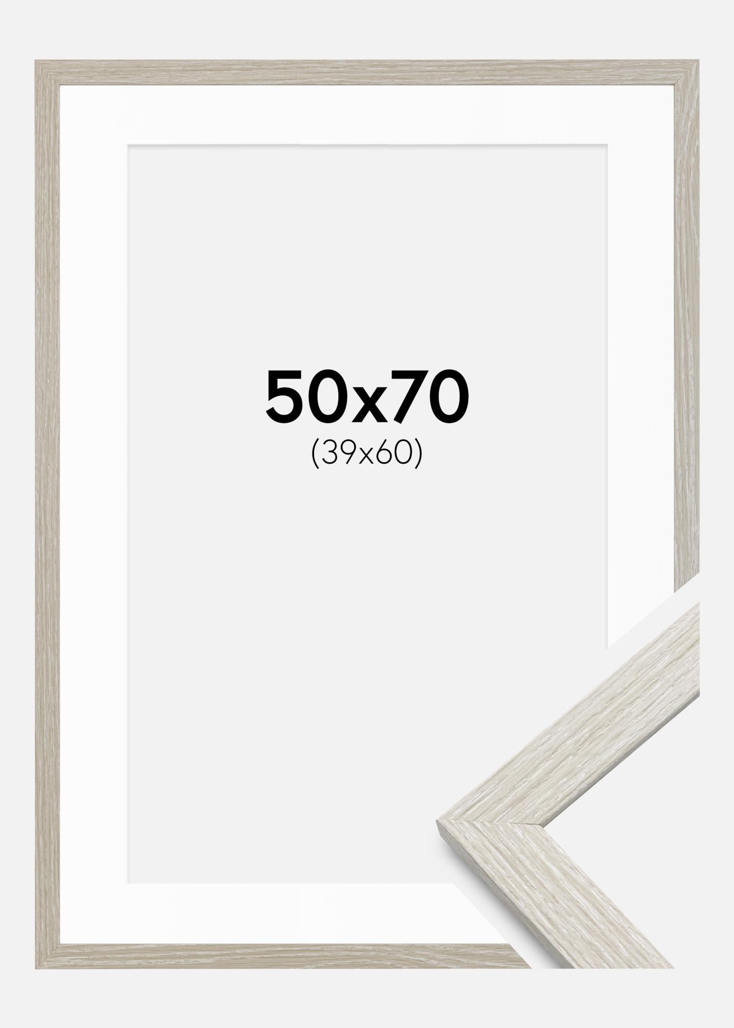 Marco Stilren gris claro roble 50x70 cm - Paspartús Blanco 40x61 cm