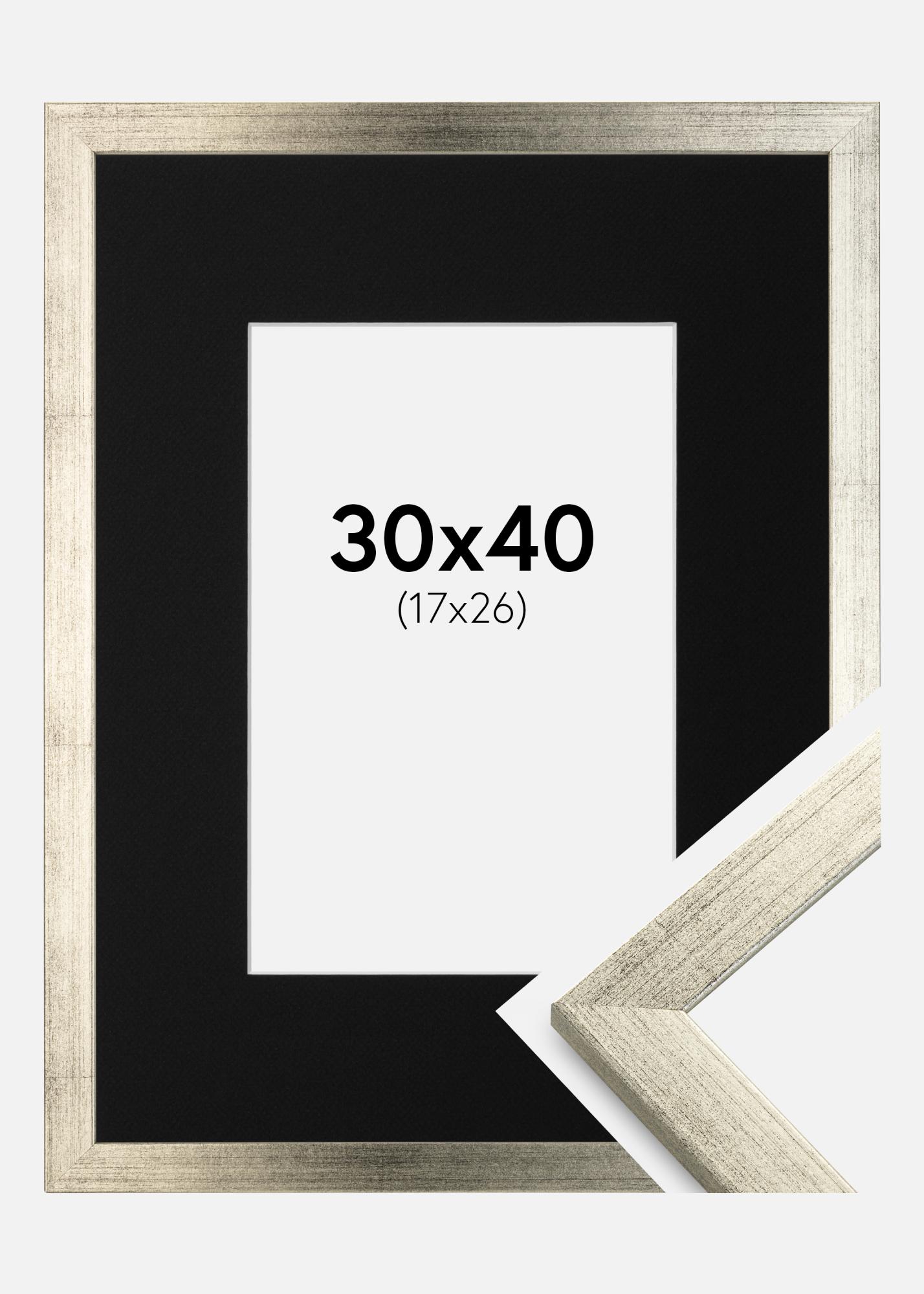 Marco Stilren Plateado 30x40 cm - Paspartú Negro 18x27 cm