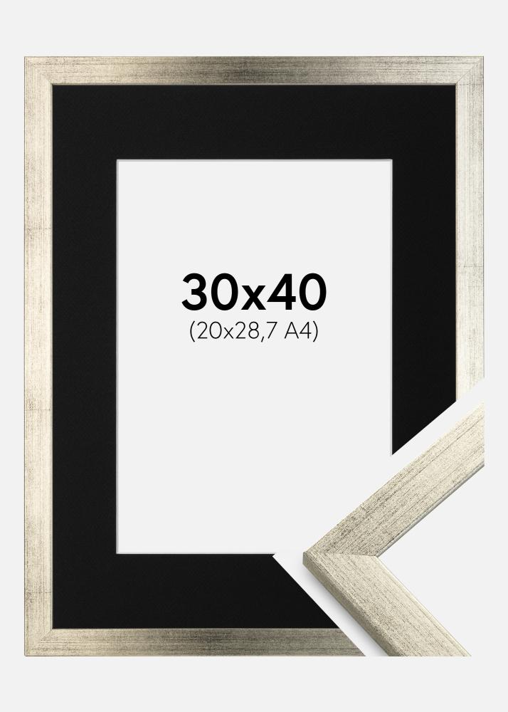 Marco Stilren Plateado 30x40 cm - Paspartú Negro 21x29,7 cm (A4)